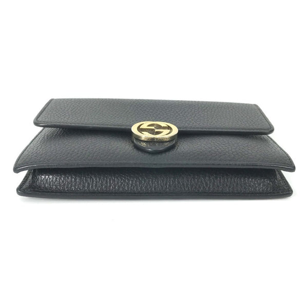GUCCI 510314 Interlocking G Chain Wallet, 2-Way Clutch/Long Wallet/Shoulder Bag, Leather, Women\'s, Black