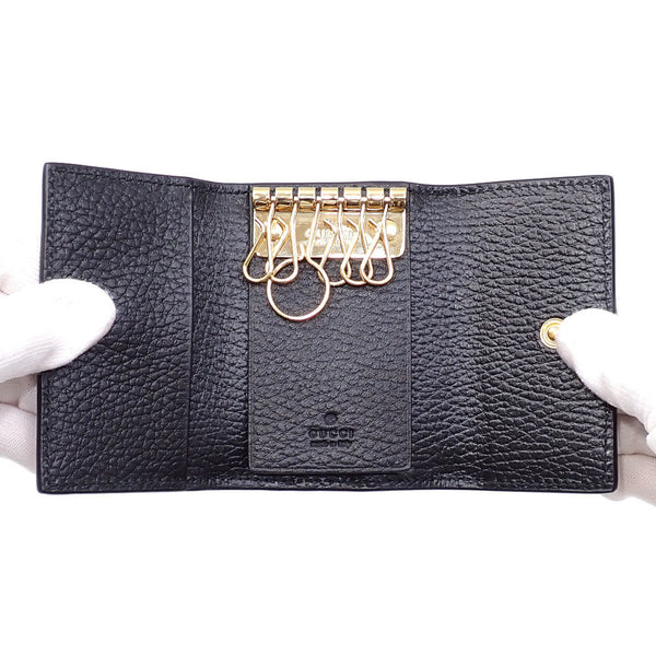 Gucci 6-ring key case, GG Supreme Double G, two-tone beige, ebony, black, 456118 17WAG 1283, for men and women