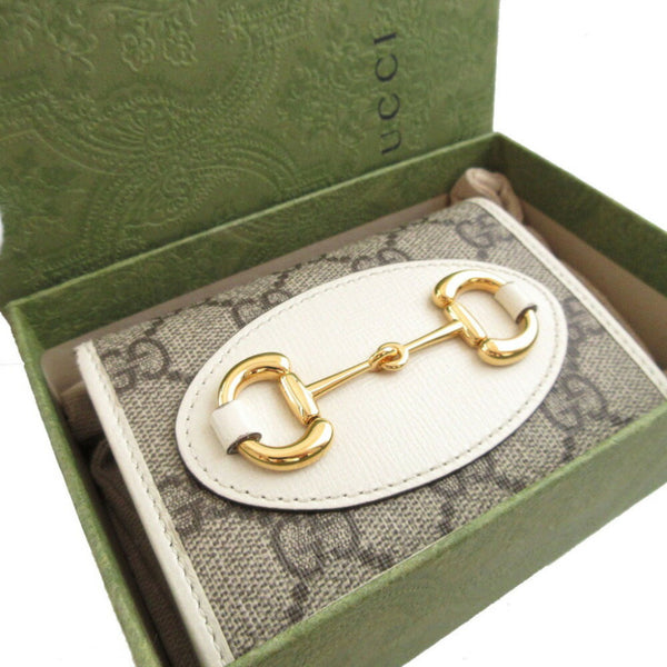 Gucci 621887 Horsebit GG Supreme Leather Beige Compact Wallet Bi-fold 0855GUCCI