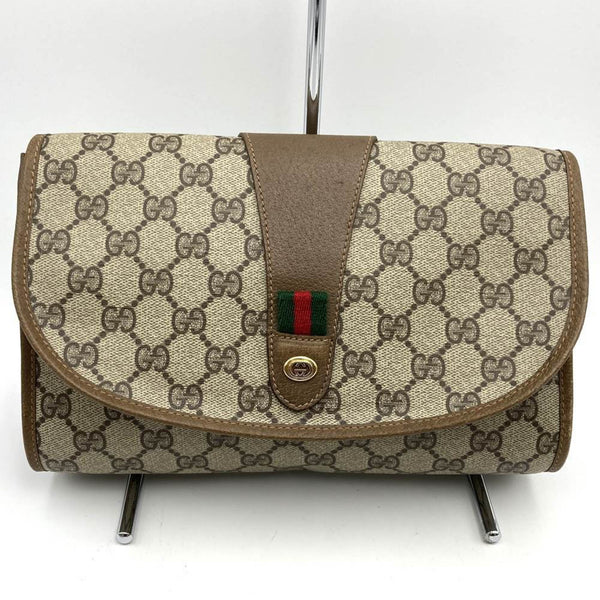 GUCCI 89, 01, 030 Second Bag, Clutch Pouch, Sherry Line, GG Supreme, Beige, for Men and Women