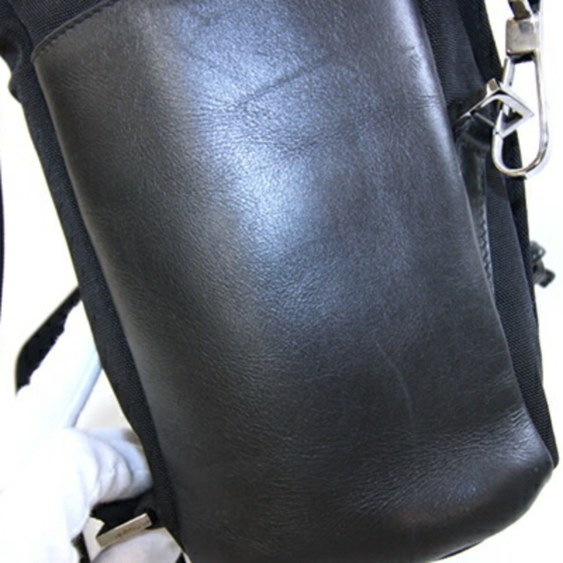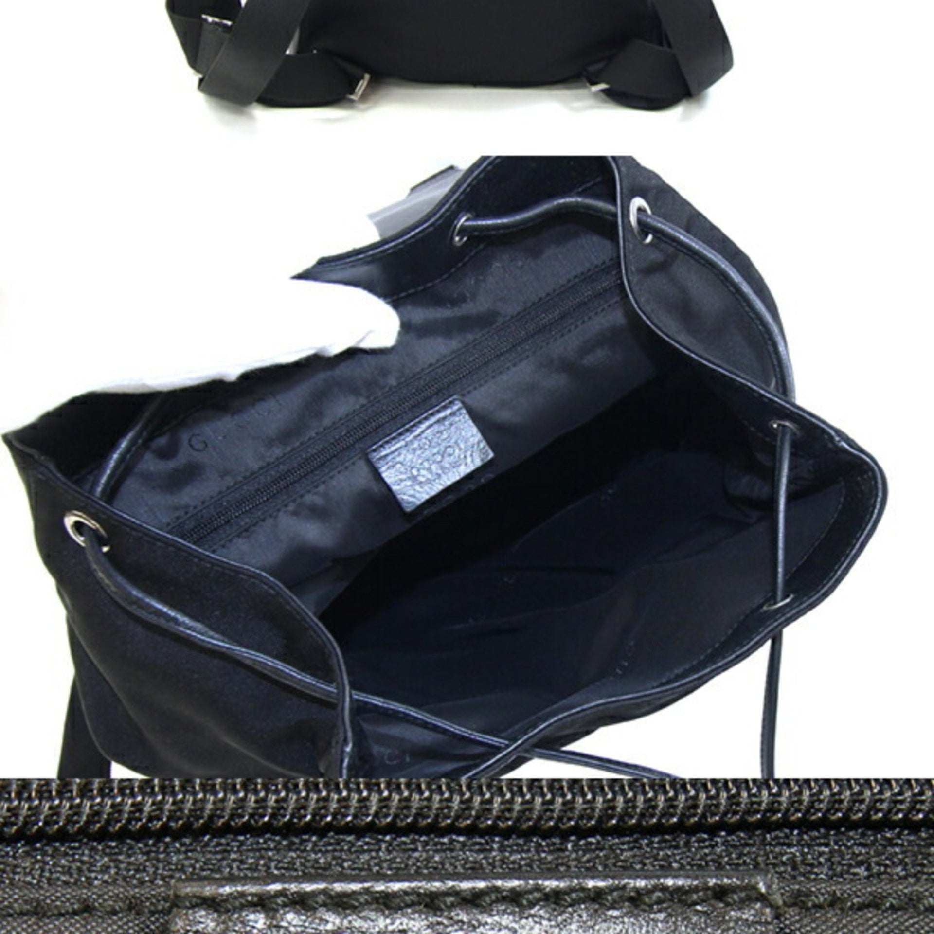 Gucci Backpack 008 0233 Black Nylon Canvas Leather Day Bag Old Women\'s GUCCI