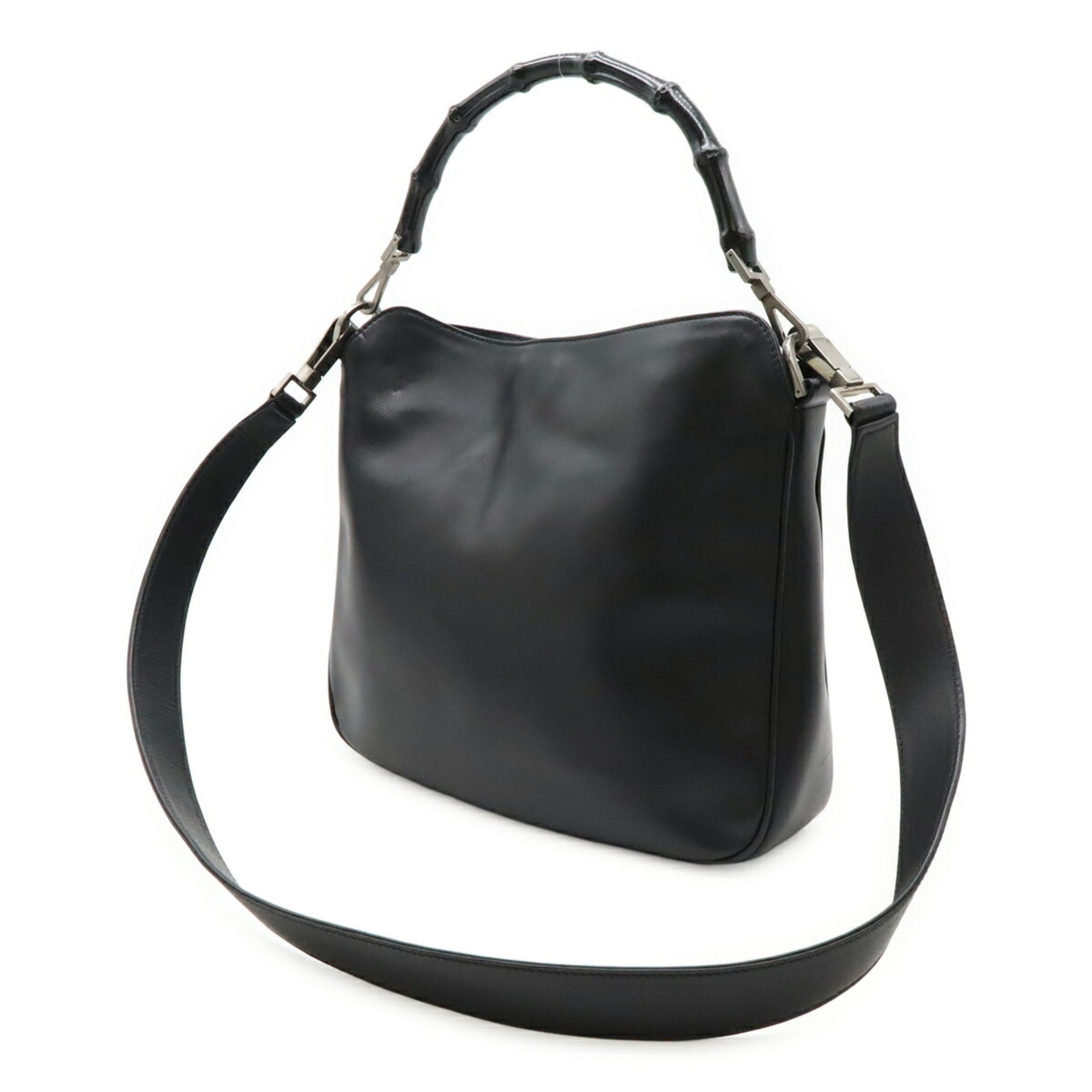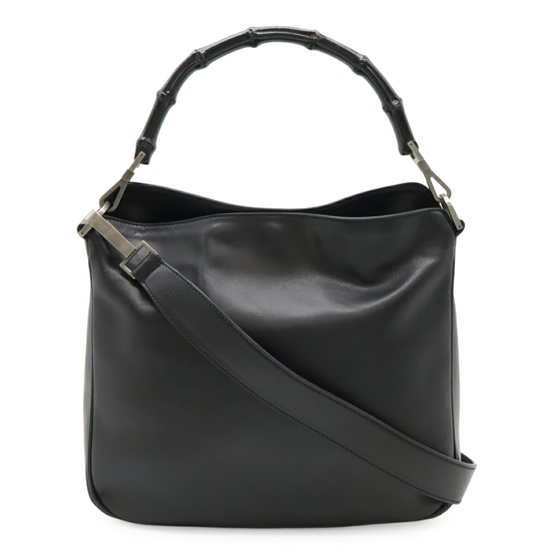 GUCCI Bamboo Handbag Shoulder Bag Tote Leather Black 001.1638