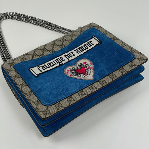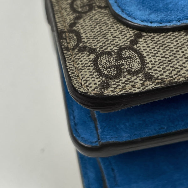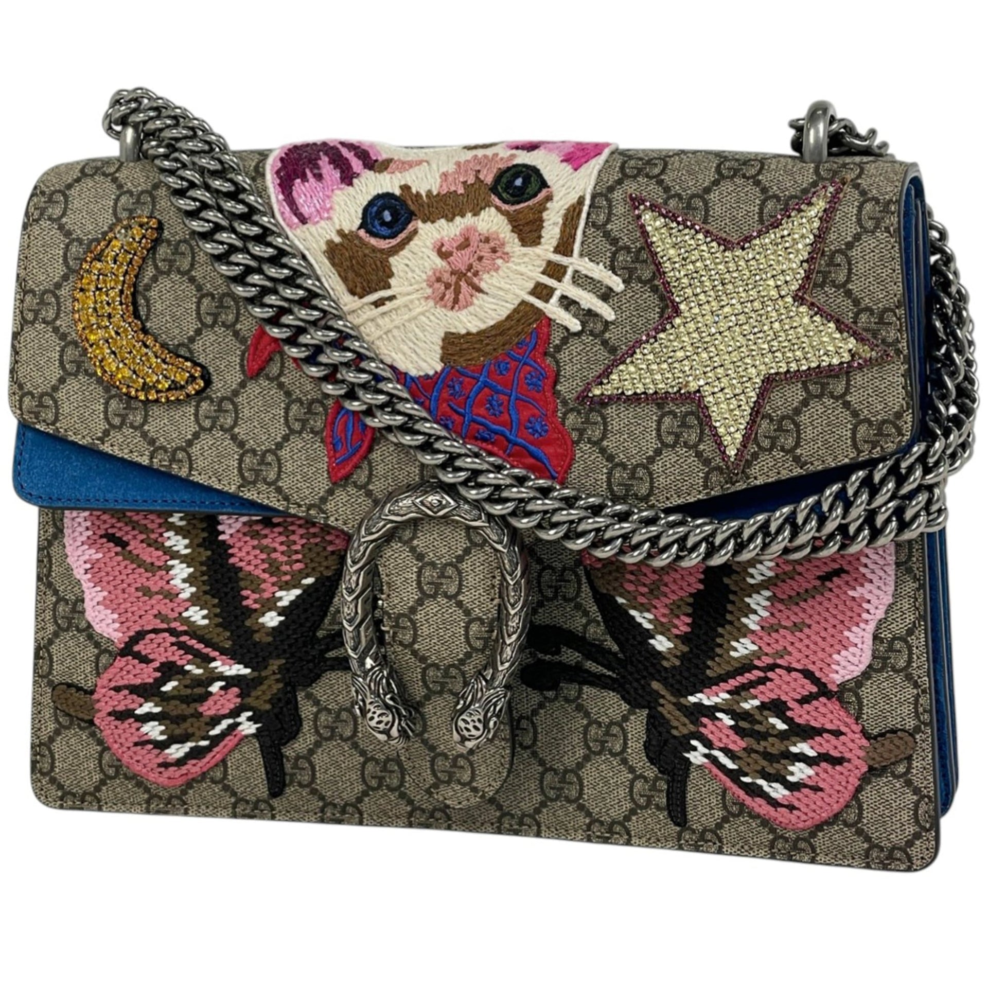 Gucci Dionysus Chain Shoulder Bag with Cat Design, Double Flap, and GG Print, Supreme, Beige Blue, 403348, Women\'s