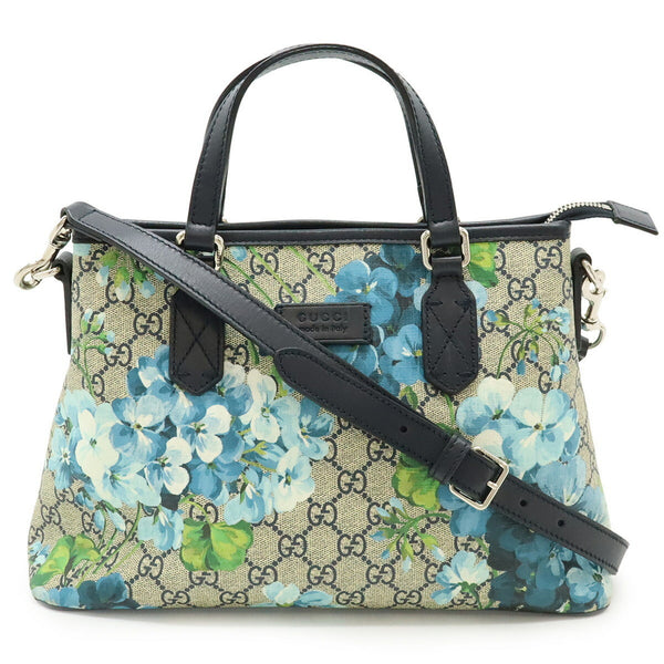 GUCCI GG Blooms Handbag, Tote Bag, Shoulder PVC Leather, Flower, Beige, Blue, 429019