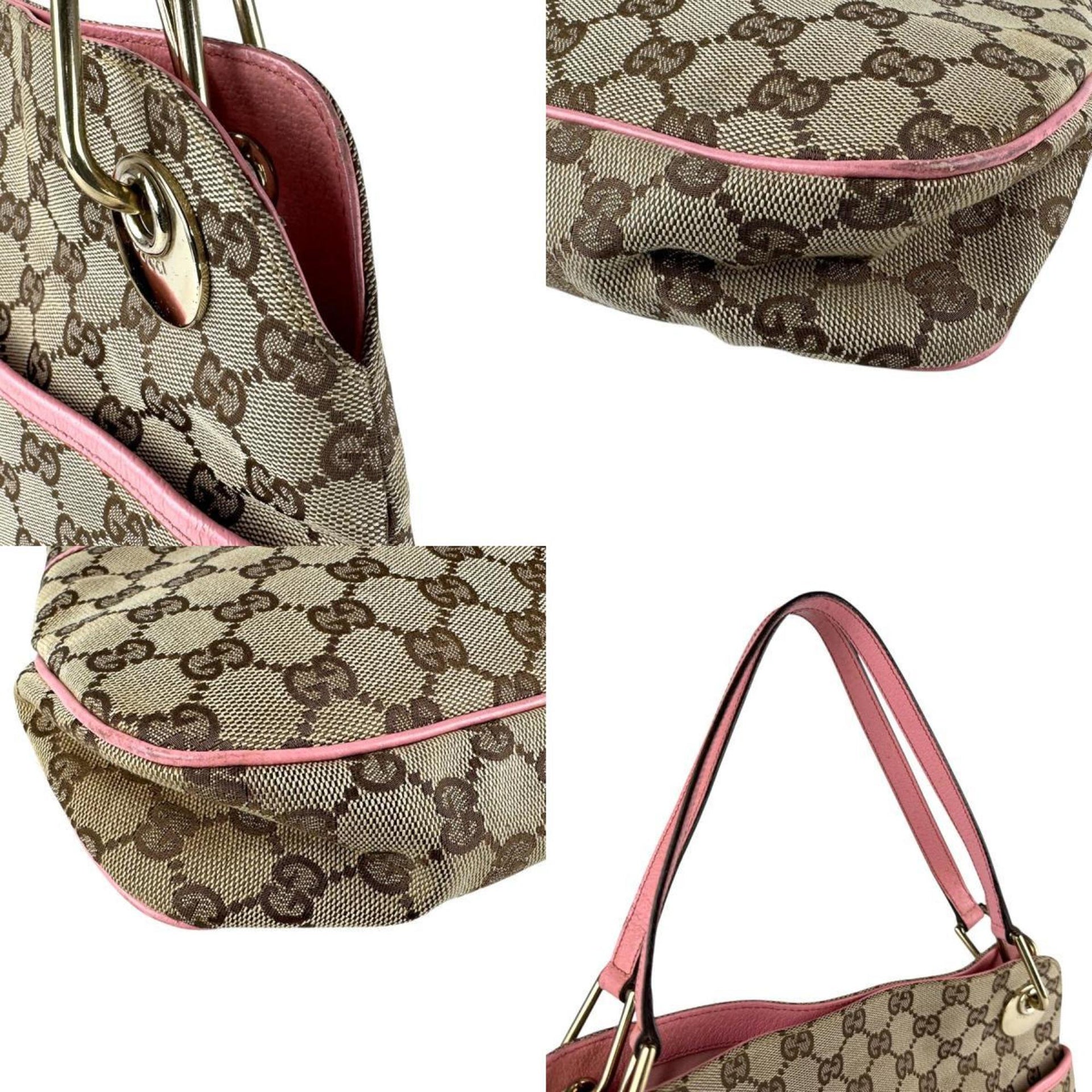 Gucci GG Canvas and Leather Shoulder Bag in Beige Brown, Pink, Gold, Women\'s, 121023 z7271