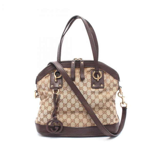 Gucci GG Canvas Interlocking G Handbag, and Leather, Women\'s, Beige Brown, 247279