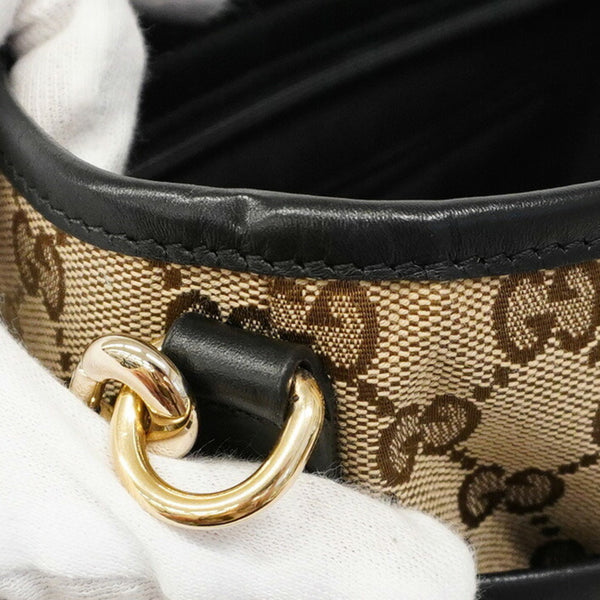 Gucci GG Canvas Sherry Line Shoulder Bag 388926 Black Brown Women\'s