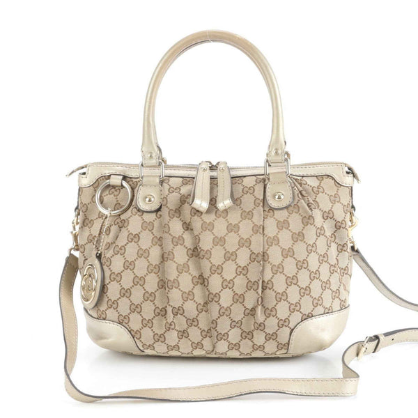 Gucci GG Canvas Sukey 247902 Leather 2-Way Shoulder Tote Bag Brown Women\'s