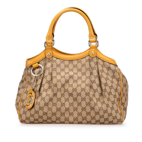 Gucci GG Canvas Sukey Handbag 211944 Beige Yellow Leather Women\'s GUCCI