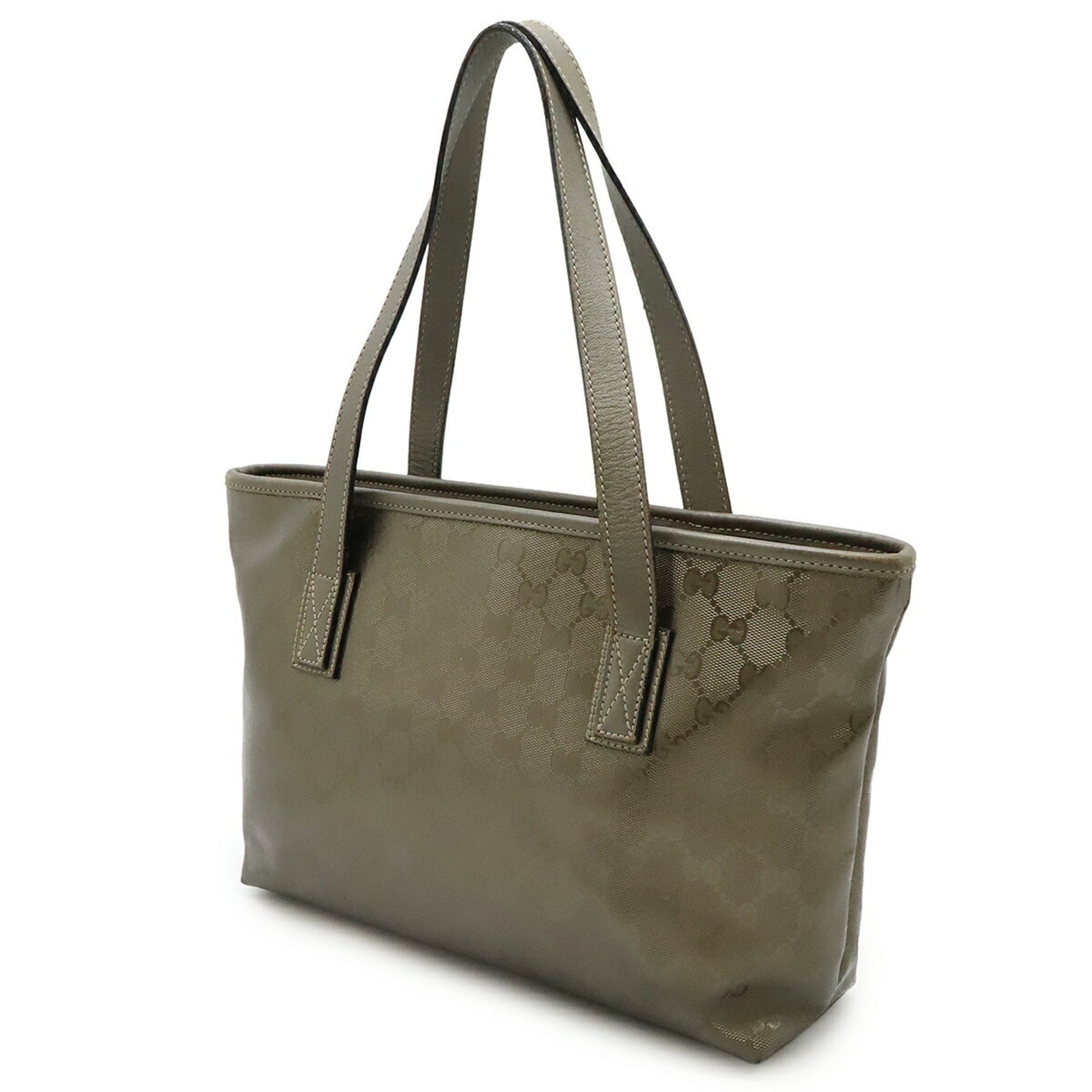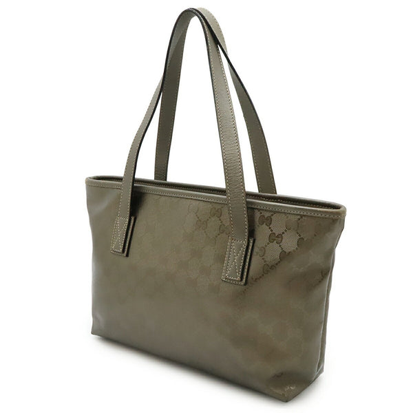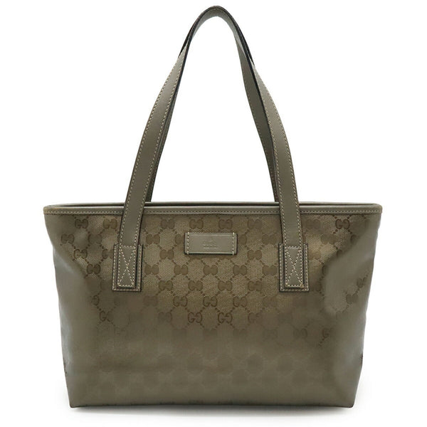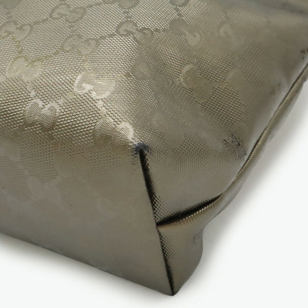 GUCCI GG Imprime Tote Bag Shoulder PVC Leather Metallic Khaki 211137