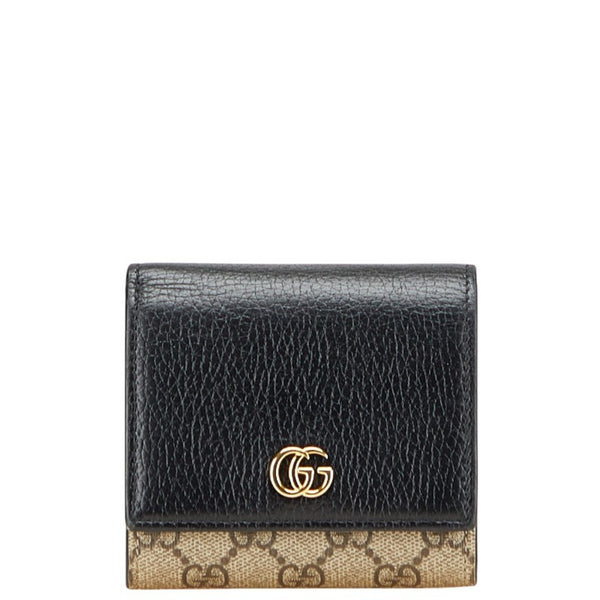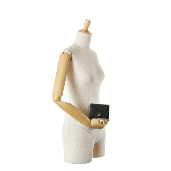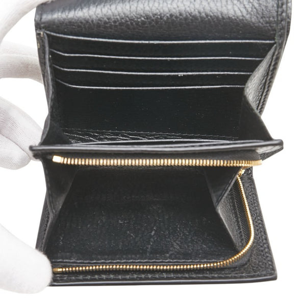 Gucci GG Marmont Bifold Wallet 598587 Black Beige Leather Women\'s GUCCI