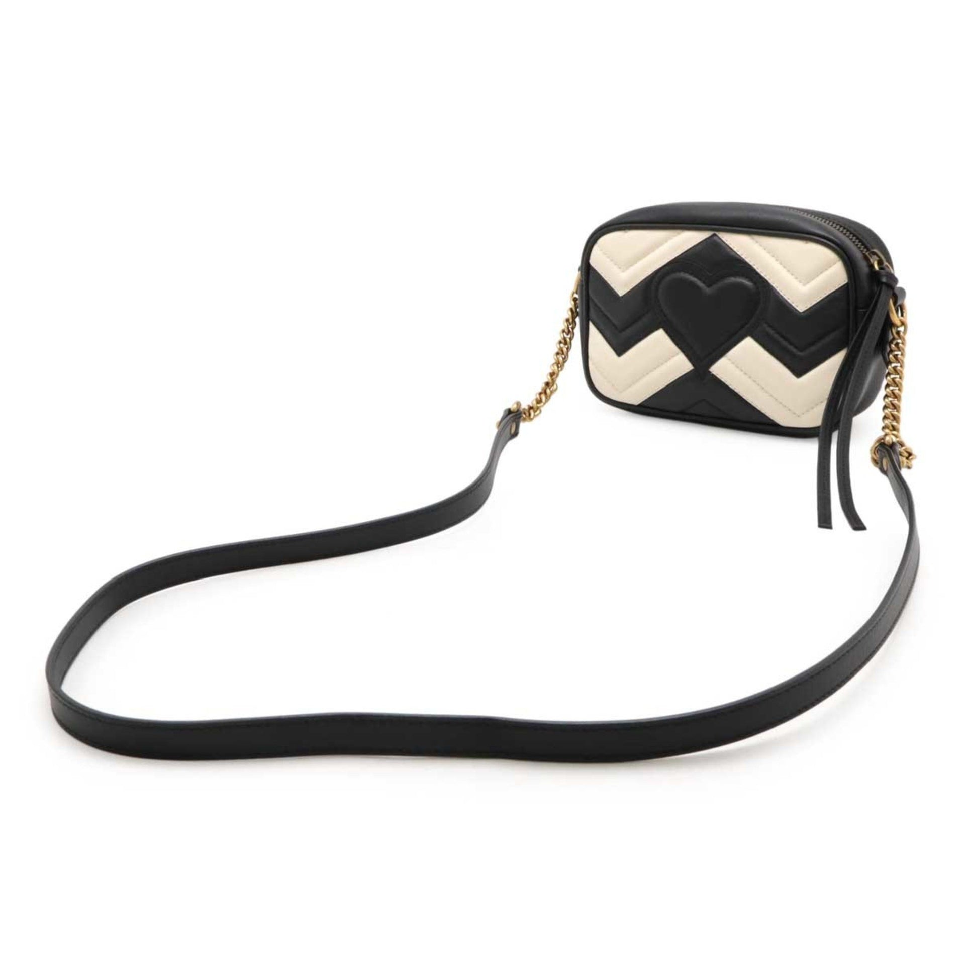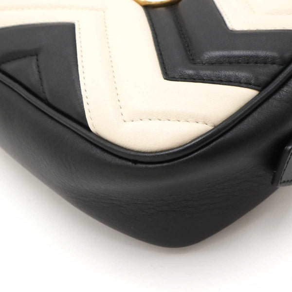 GUCCI GG Marmont quilted shoulder bag, pochette, chain bicolor leather, black, ivory, 448065
