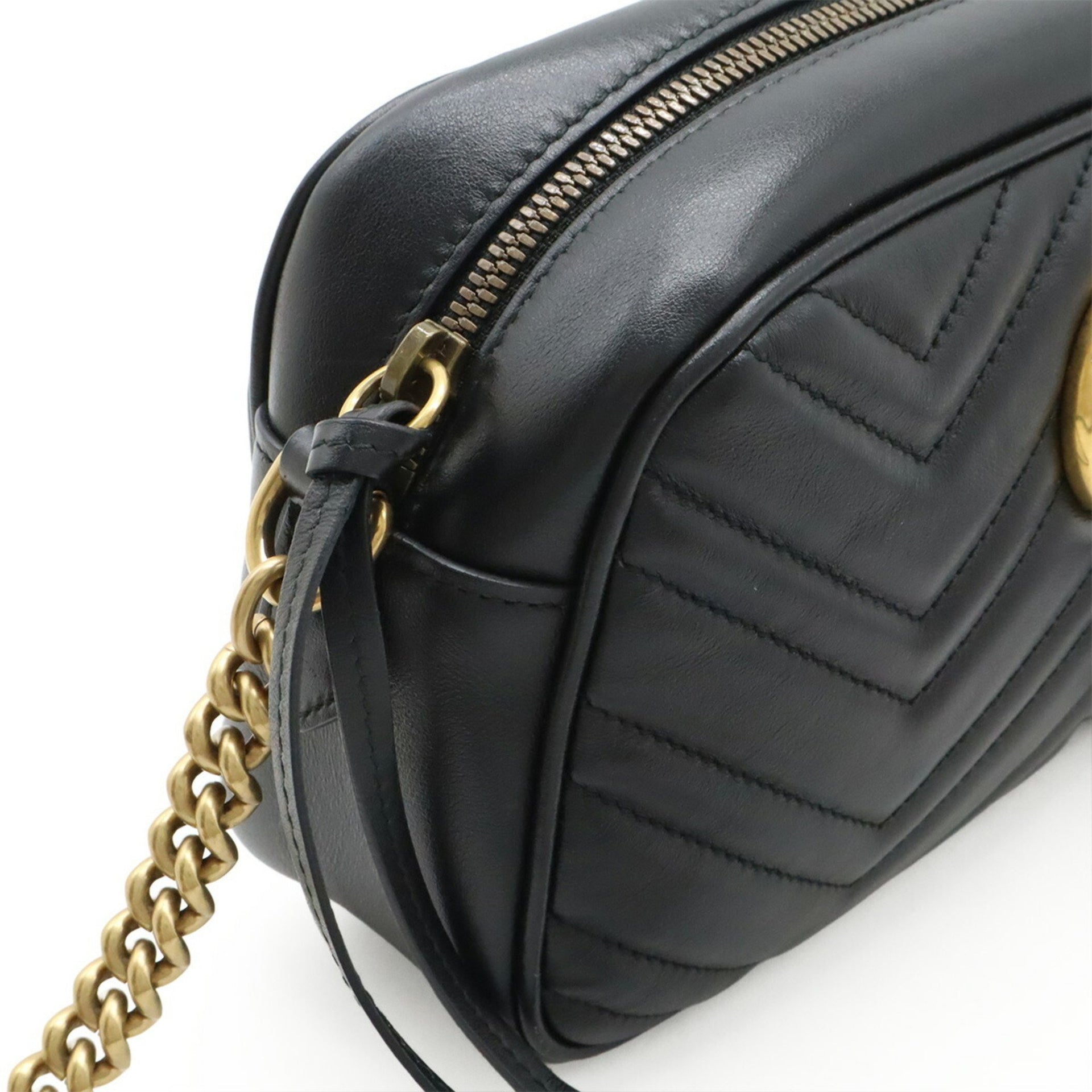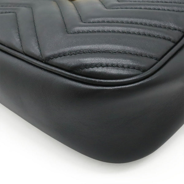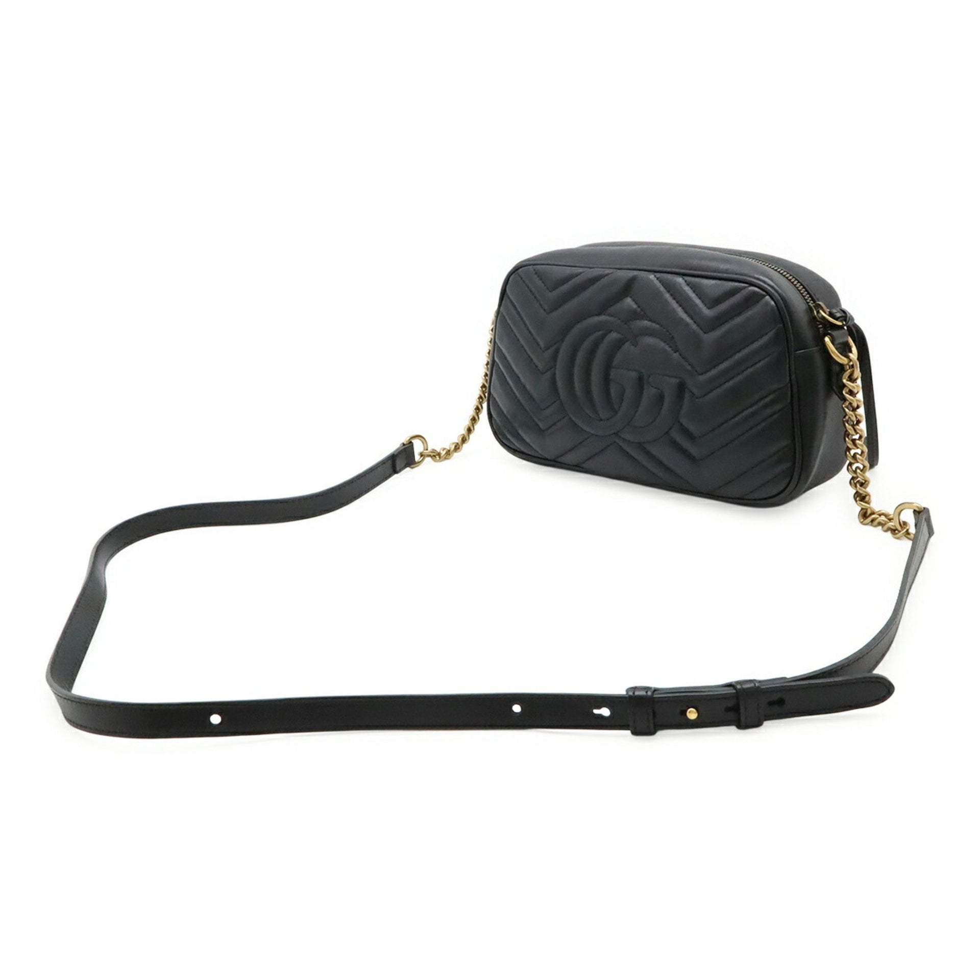 GUCCI GG Marmont Shoulder Bag, Pochette, Chain Quilted Leather, Black, 447632