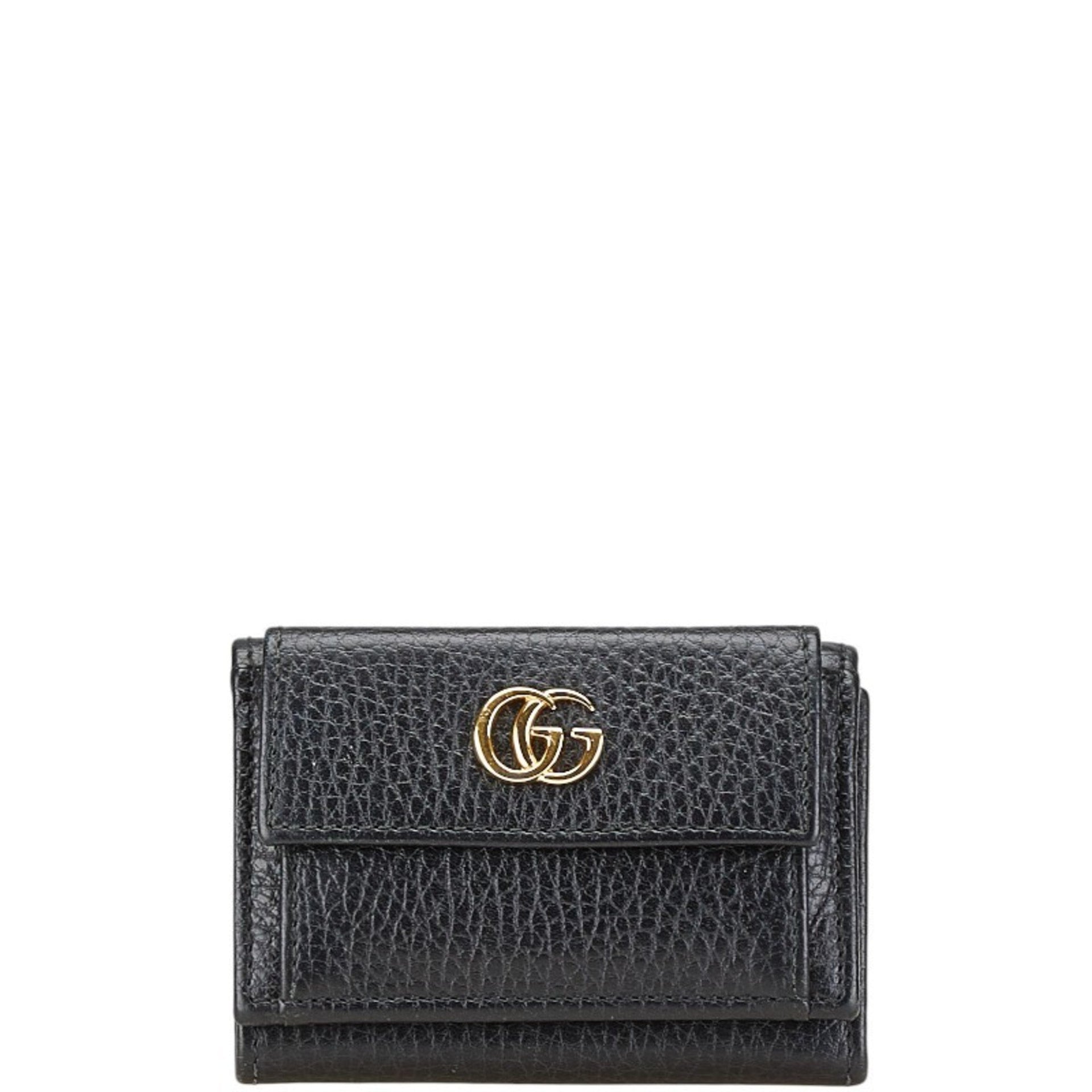 Gucci GG Marmont Tri-fold Compact Wallet 523277 Black Leather Women\'s GUCCI