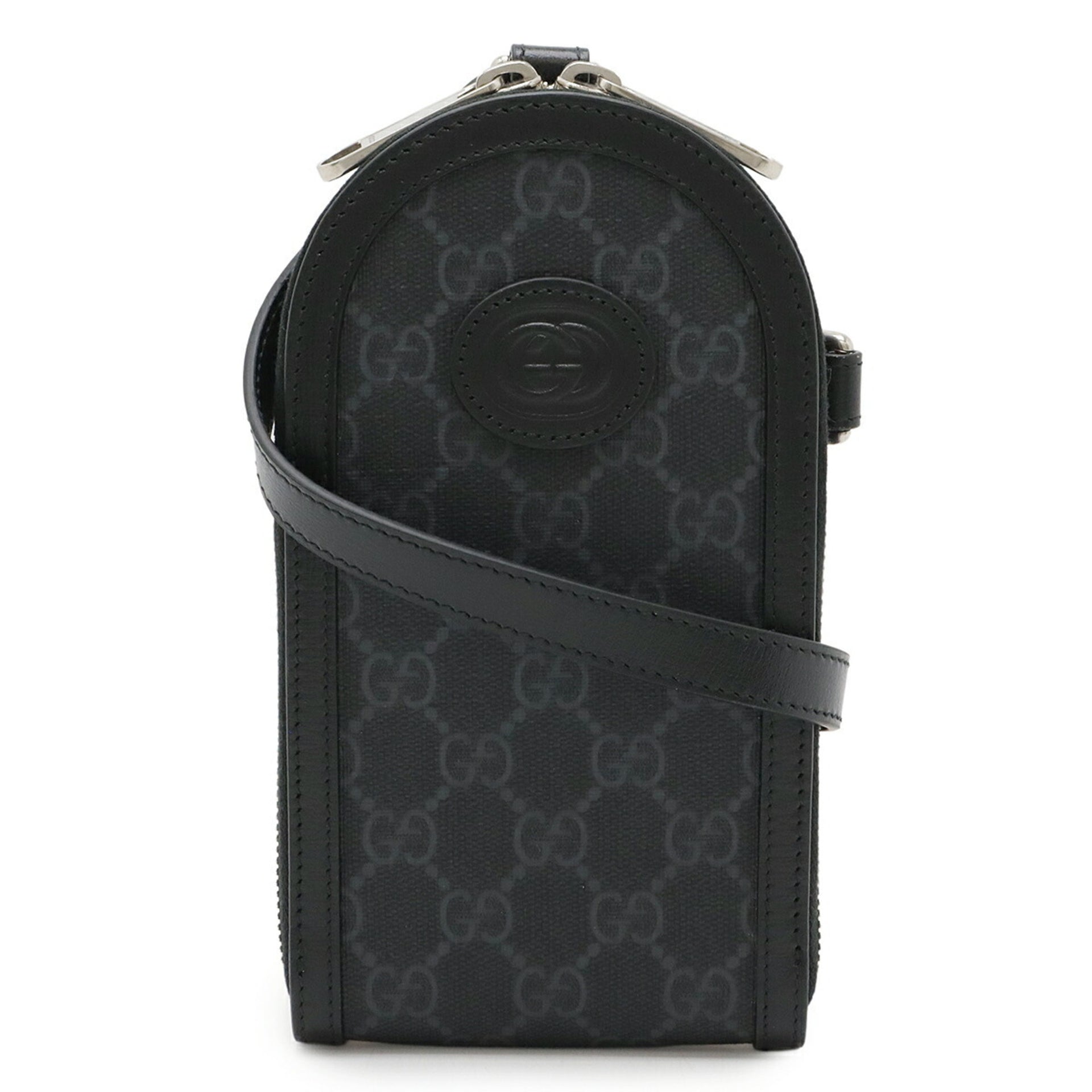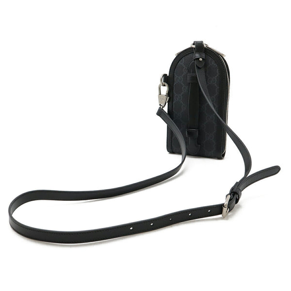 GUCCI GG Supreme Phone Holder Shoulder Bag/Pouch/Smartphone Pouch in PVC and Leather (Black/Gray) 724357