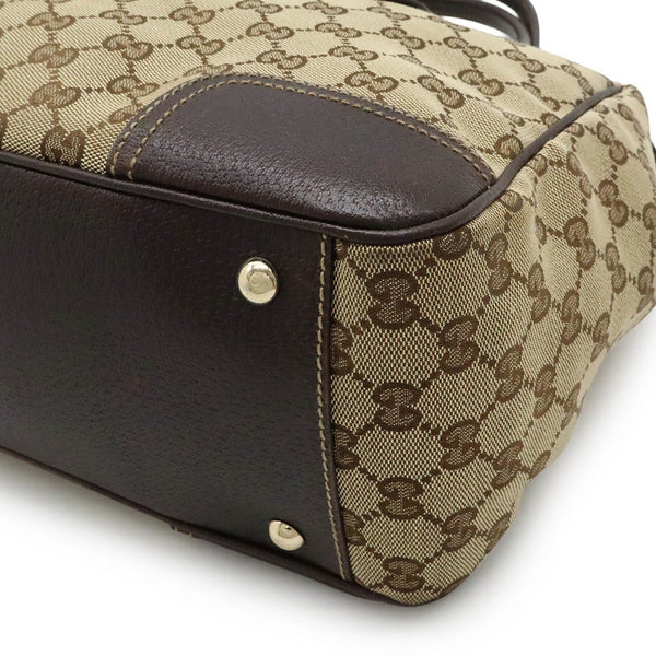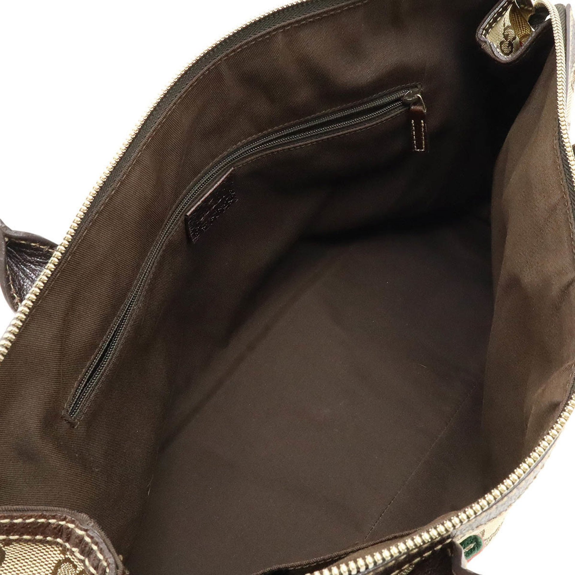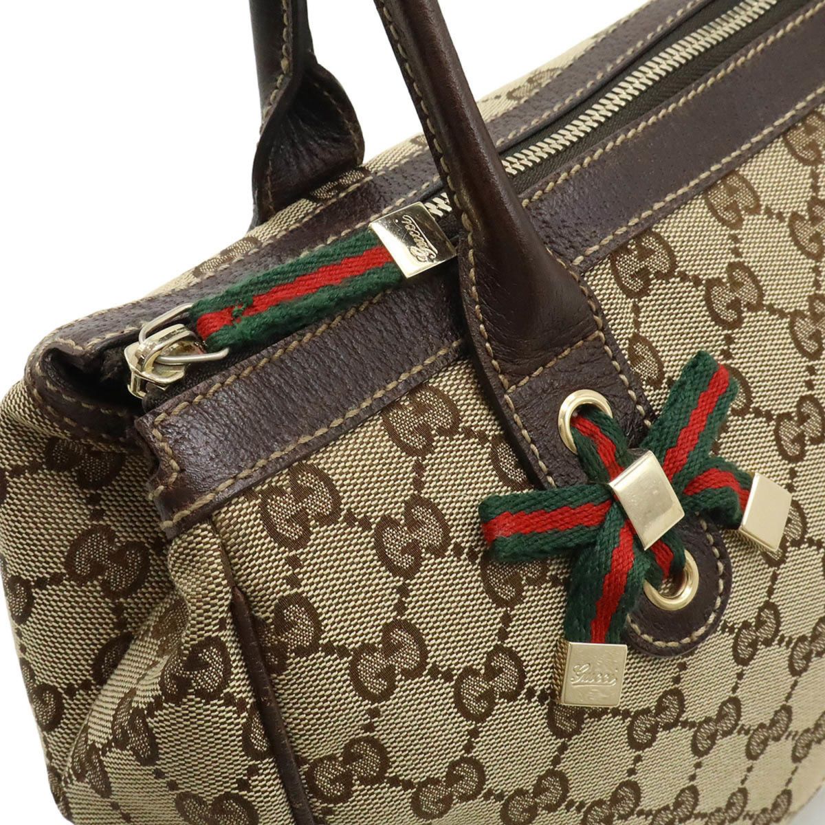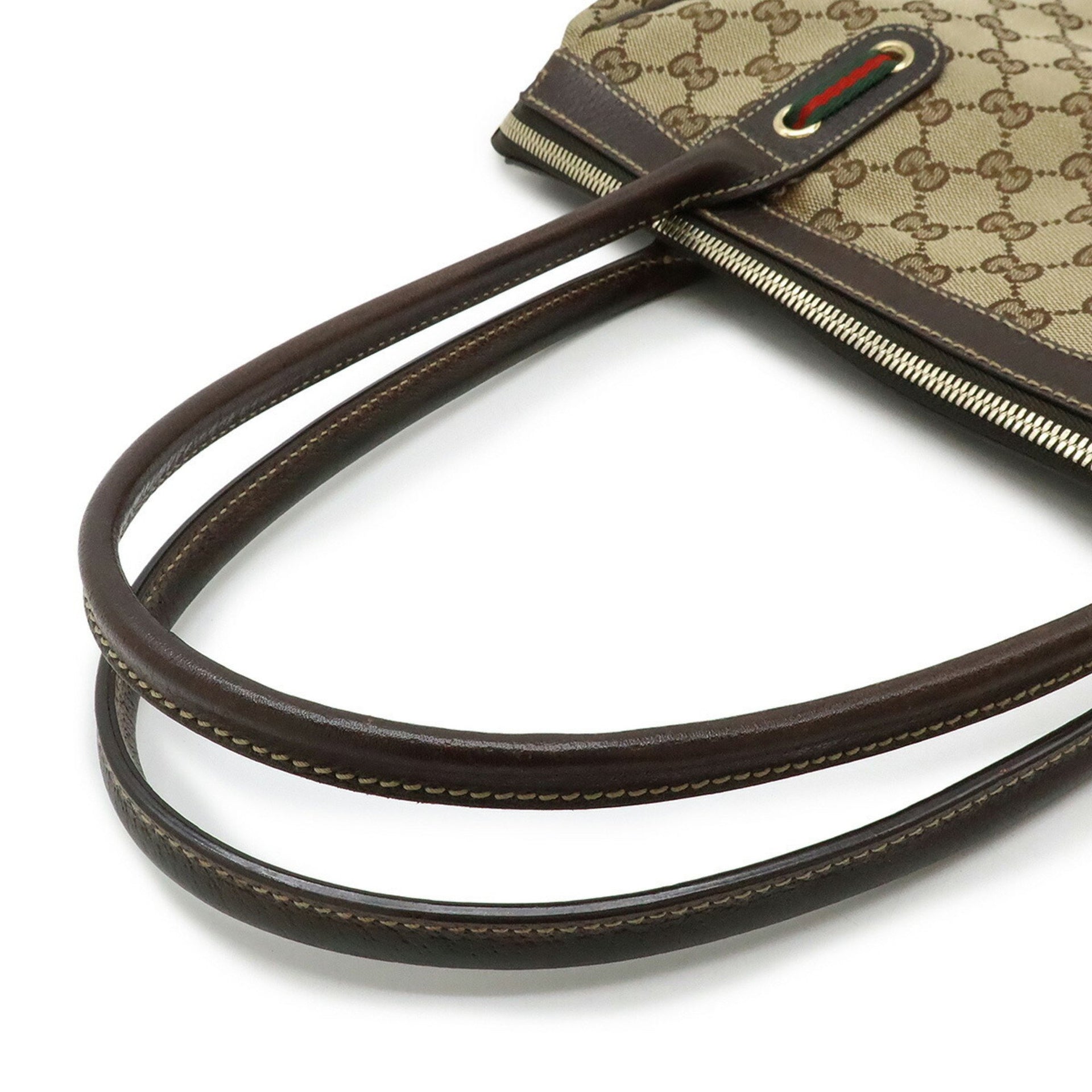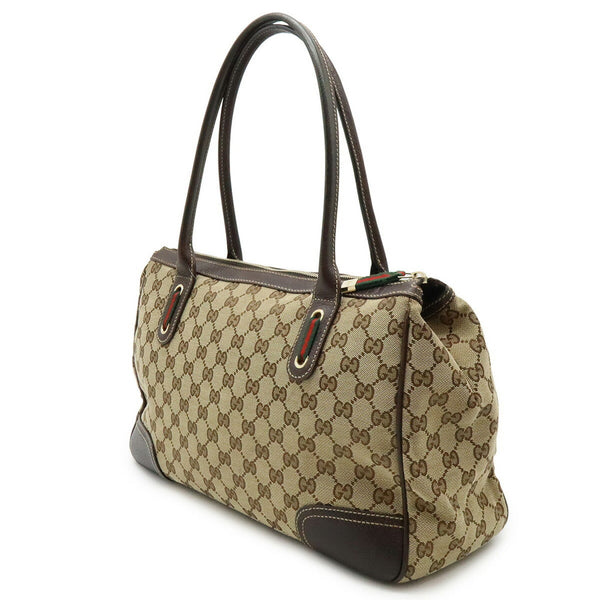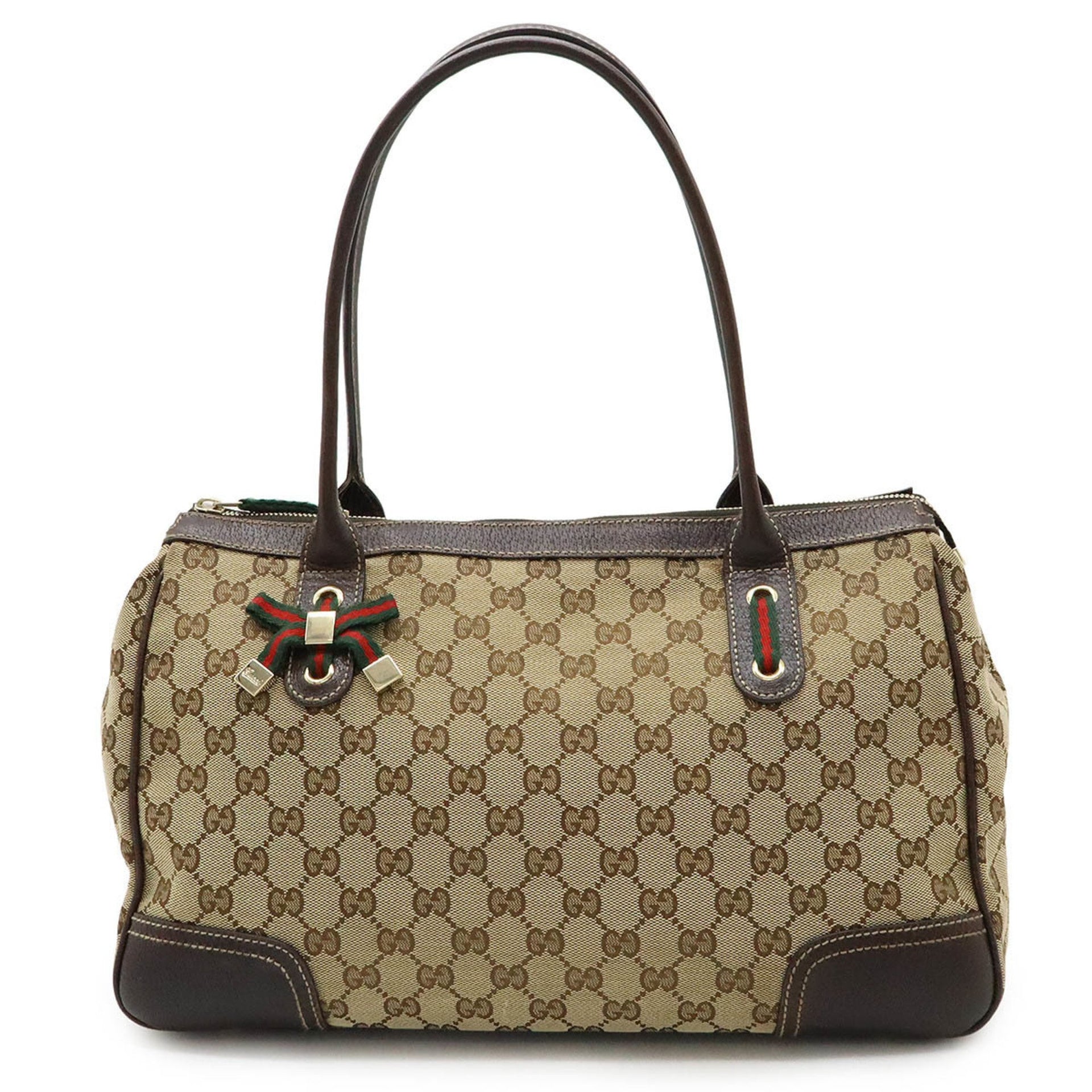 GUCCI Gucci Prince GG Canvas Ribbon Sherry Line Tote Bag Shoulder Leather Khaki Beige Dark Brown 177052