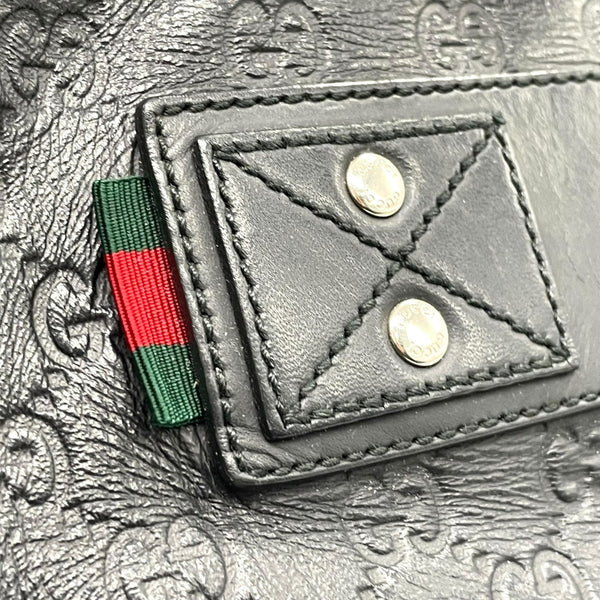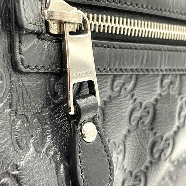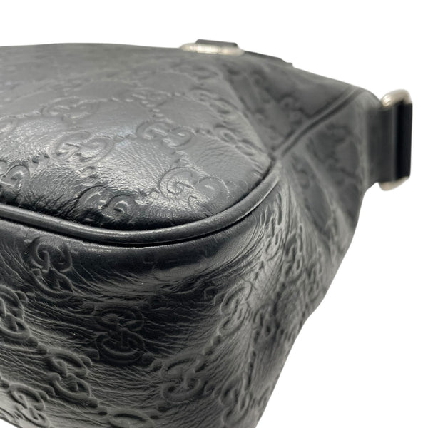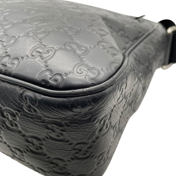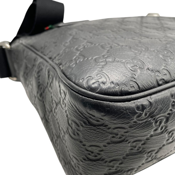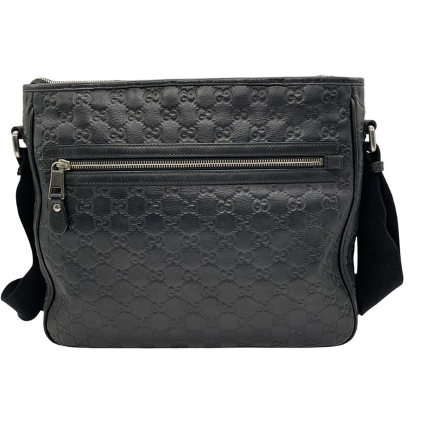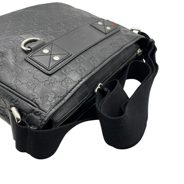 GUCCI Guccissima Shelly logo-embossed shoulder bag/messenger bag in black leather with silver hardware, model 322080. Can be worn crossbody. Suitable for men and women.