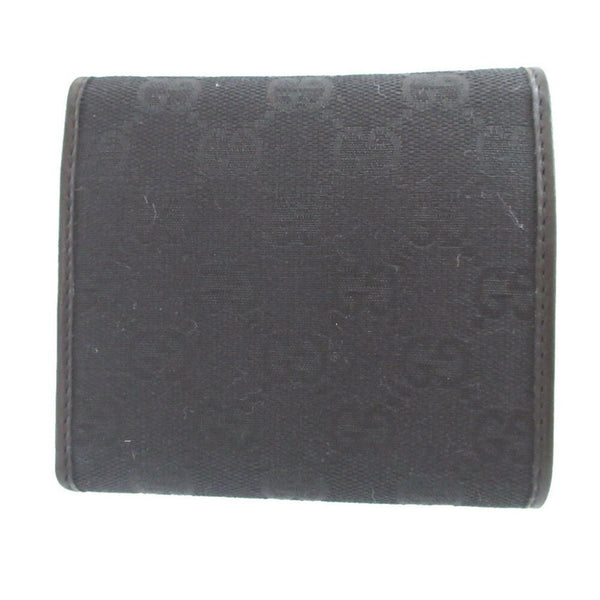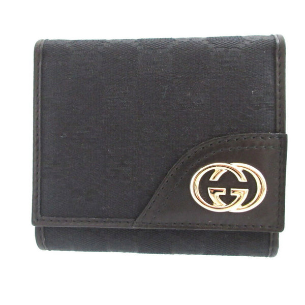 Gucci Interlocking G 181597 GG Canvas Leather Black Tri-fold Wallet 0871GUCCI