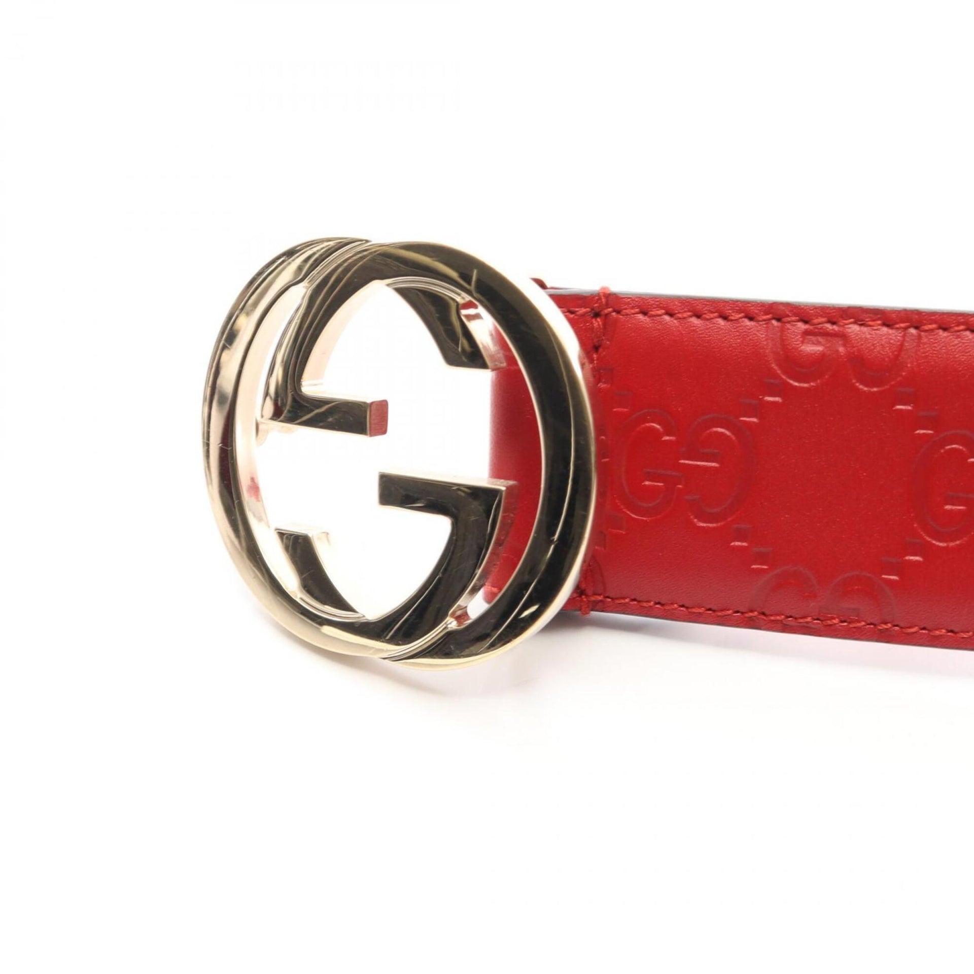 Gucci Interlocking G Belt, Leather, Women\'s, Red, 370543