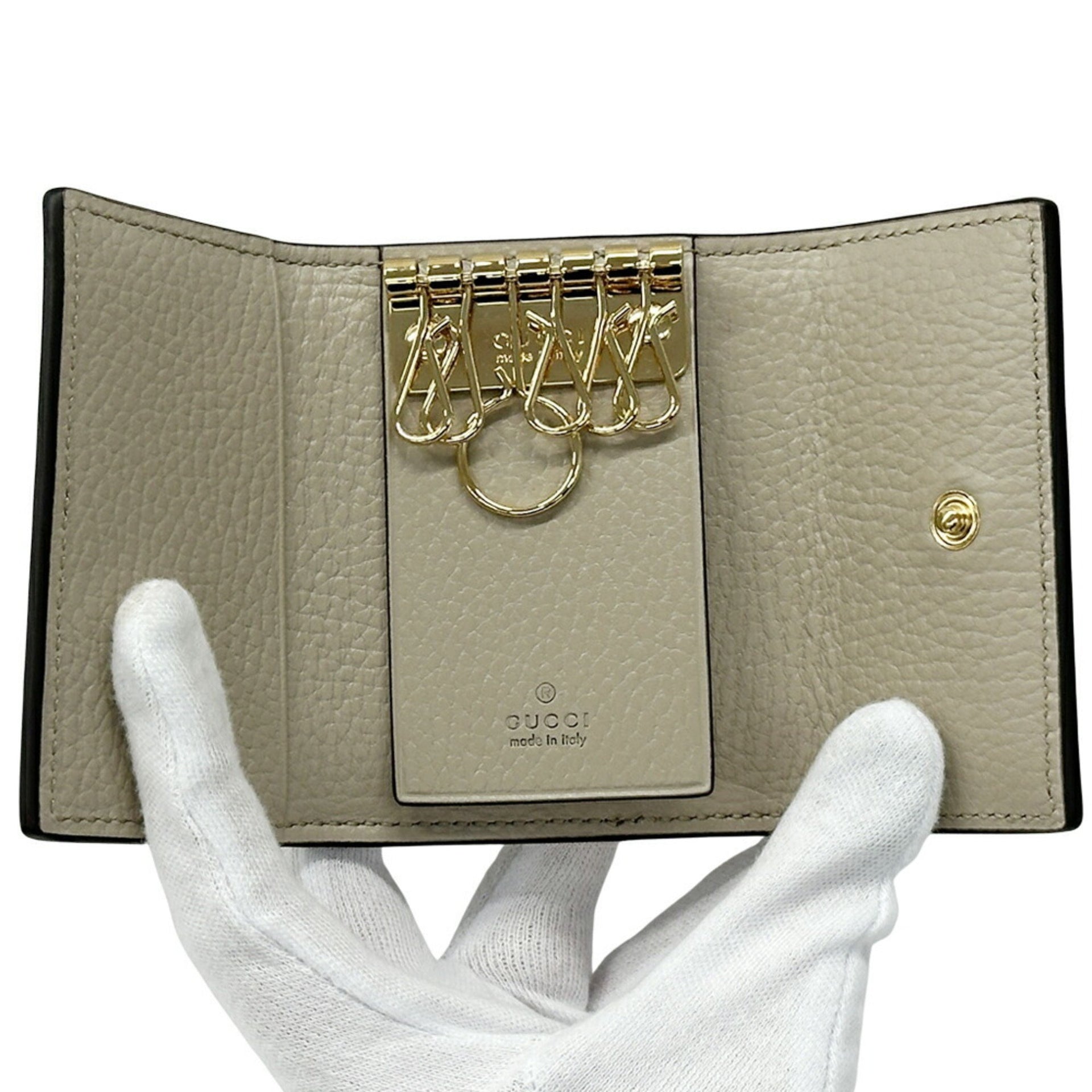 GUCCI Key Case for Women, Primarmont GG Supreme, Supreme Canvas, Beige, White, 456118, Greige, 6 Rings