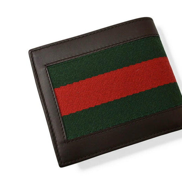 Gucci Men\'s Bifold Wallet with Web Lines in Dark Brown, 245768