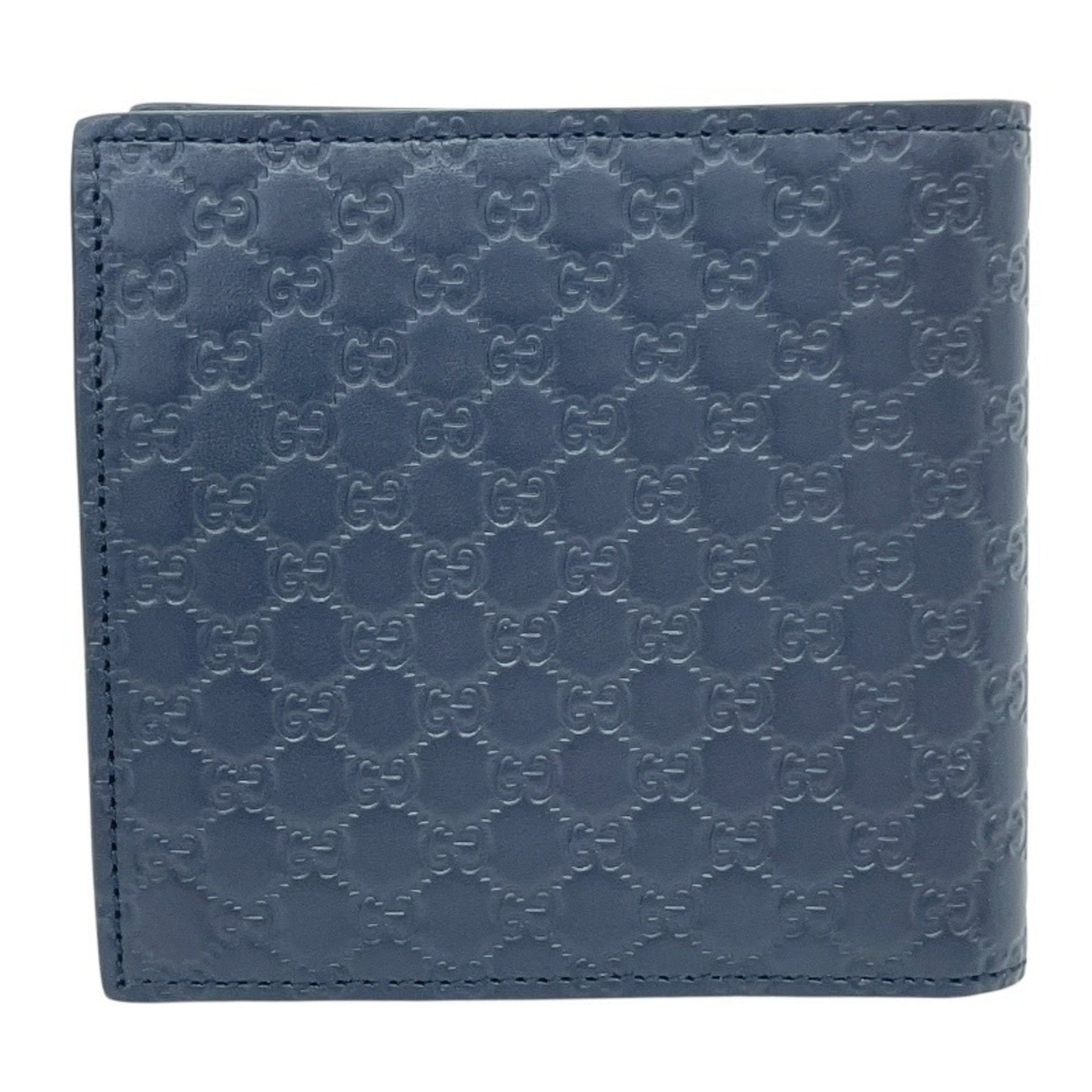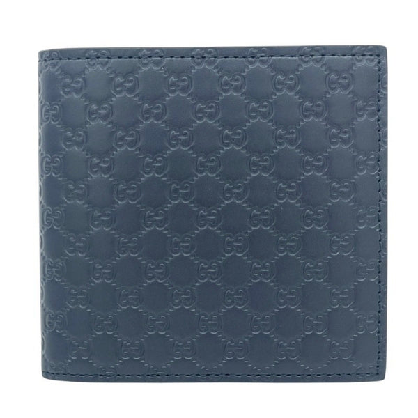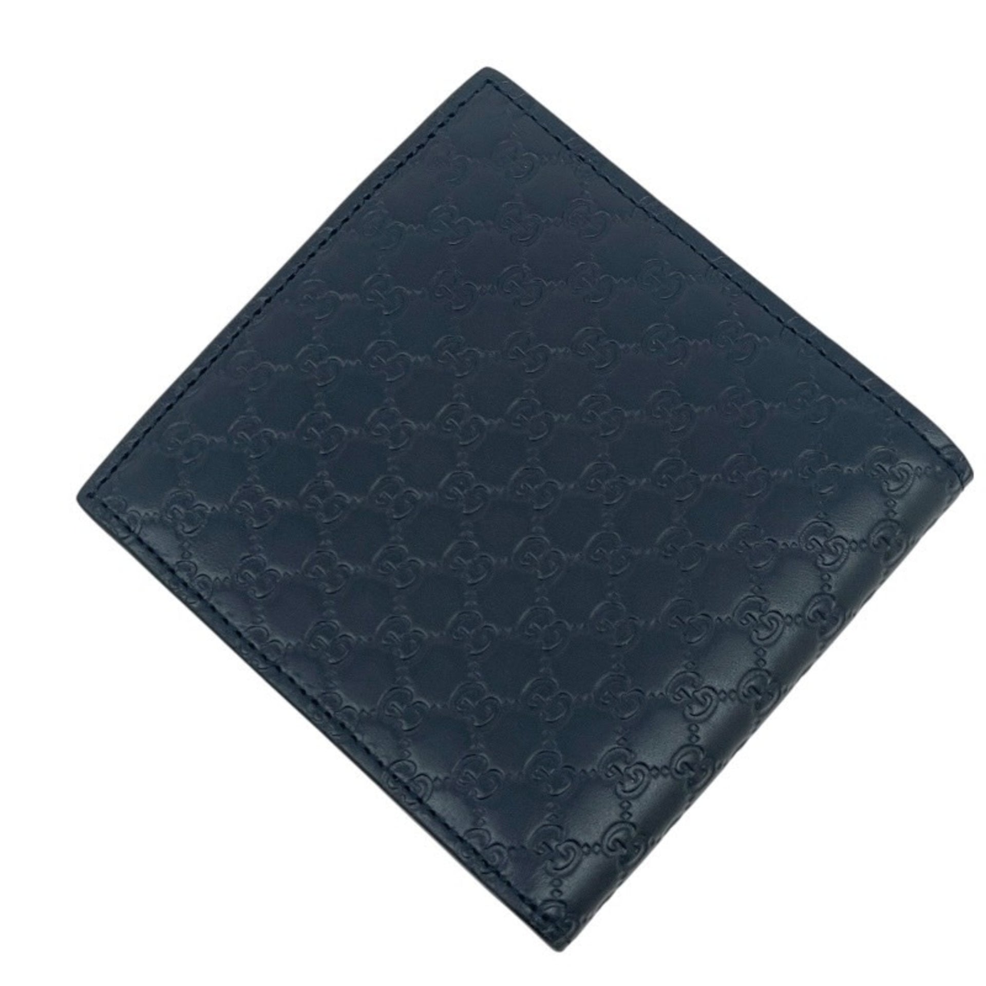 GUCCI Micro Guccissima 150413 Leather Bi-fold Wallet, Men\'s, Navy Blue