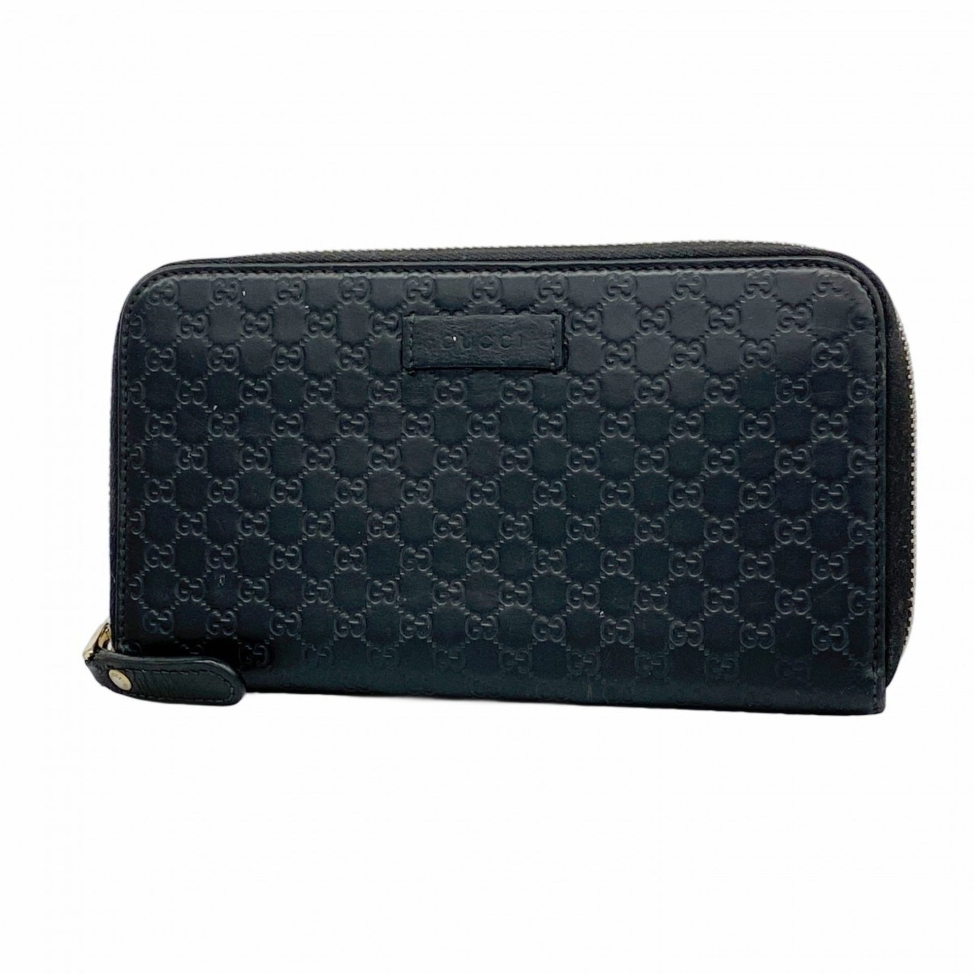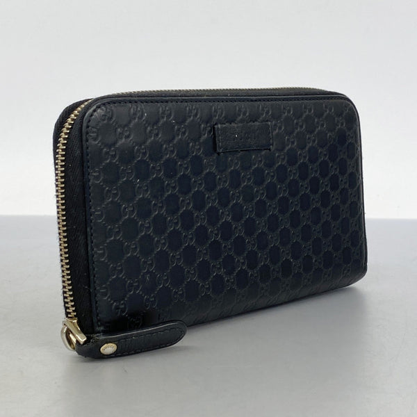 Gucci Micro Guccissima Long Wallet 449391 Leather Black Champagne Women\'s