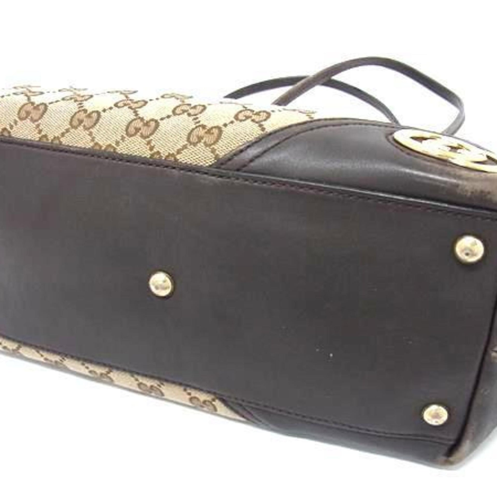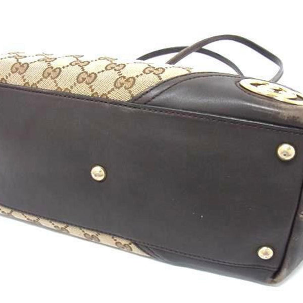 GUCCI New Brit Tote Bag 169946 Beige Brown GG Canvas Leather Women\'s Shoulder