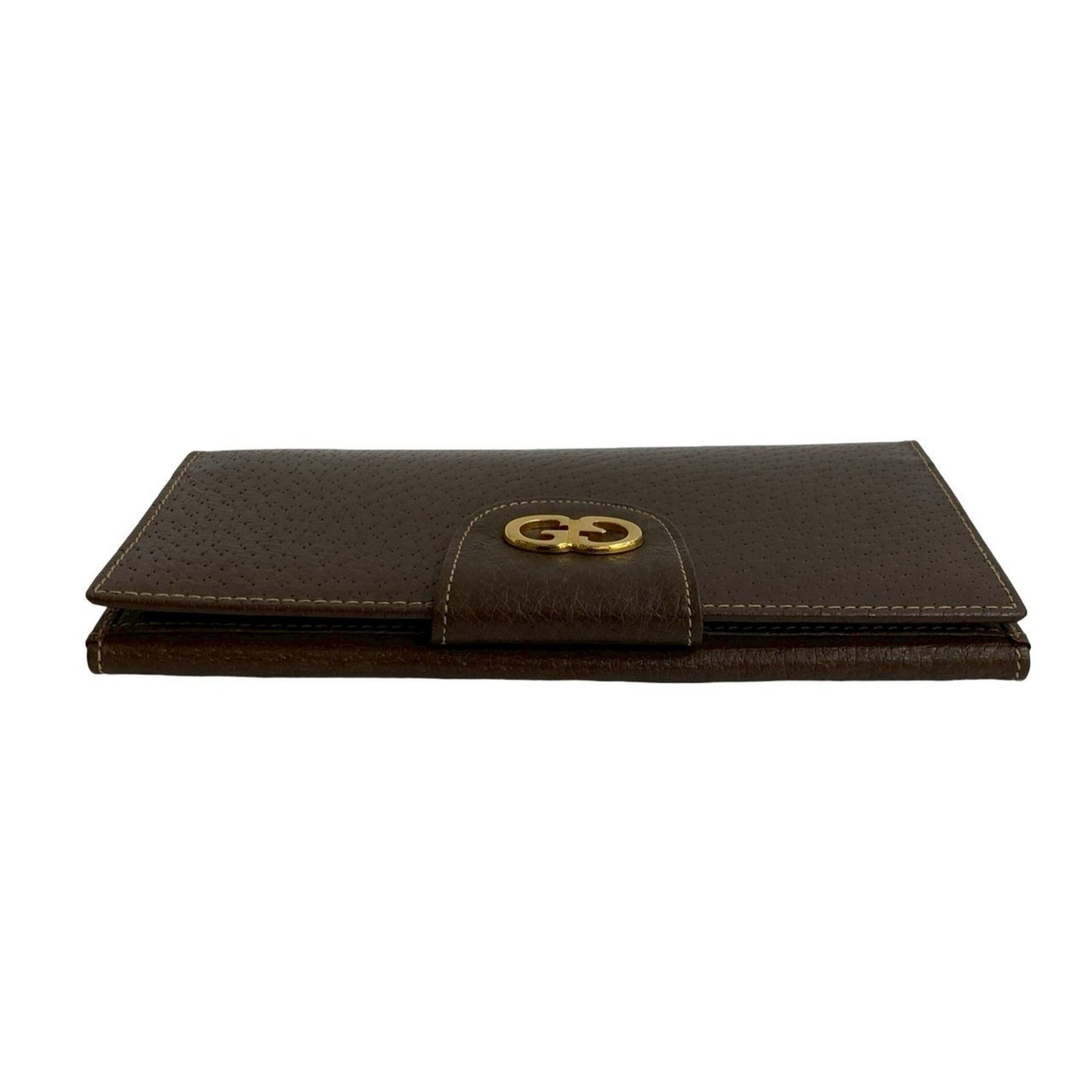 GUCCI Old Gucci GG Logo Metal Hardware Leather Genuine Bifold Long Wallet Brown 38627