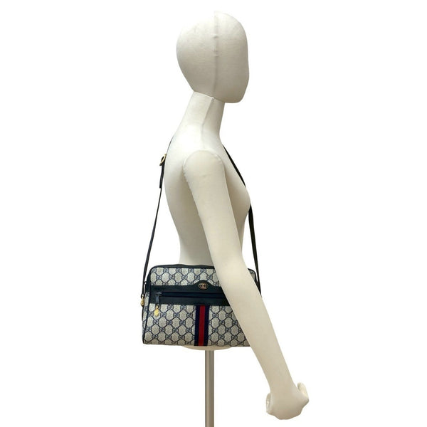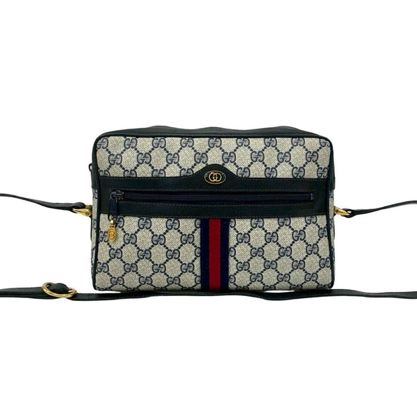 GUCCI Old Gucci Sherry Line GG Logo Leather Shoulder Bag Navy f16-1