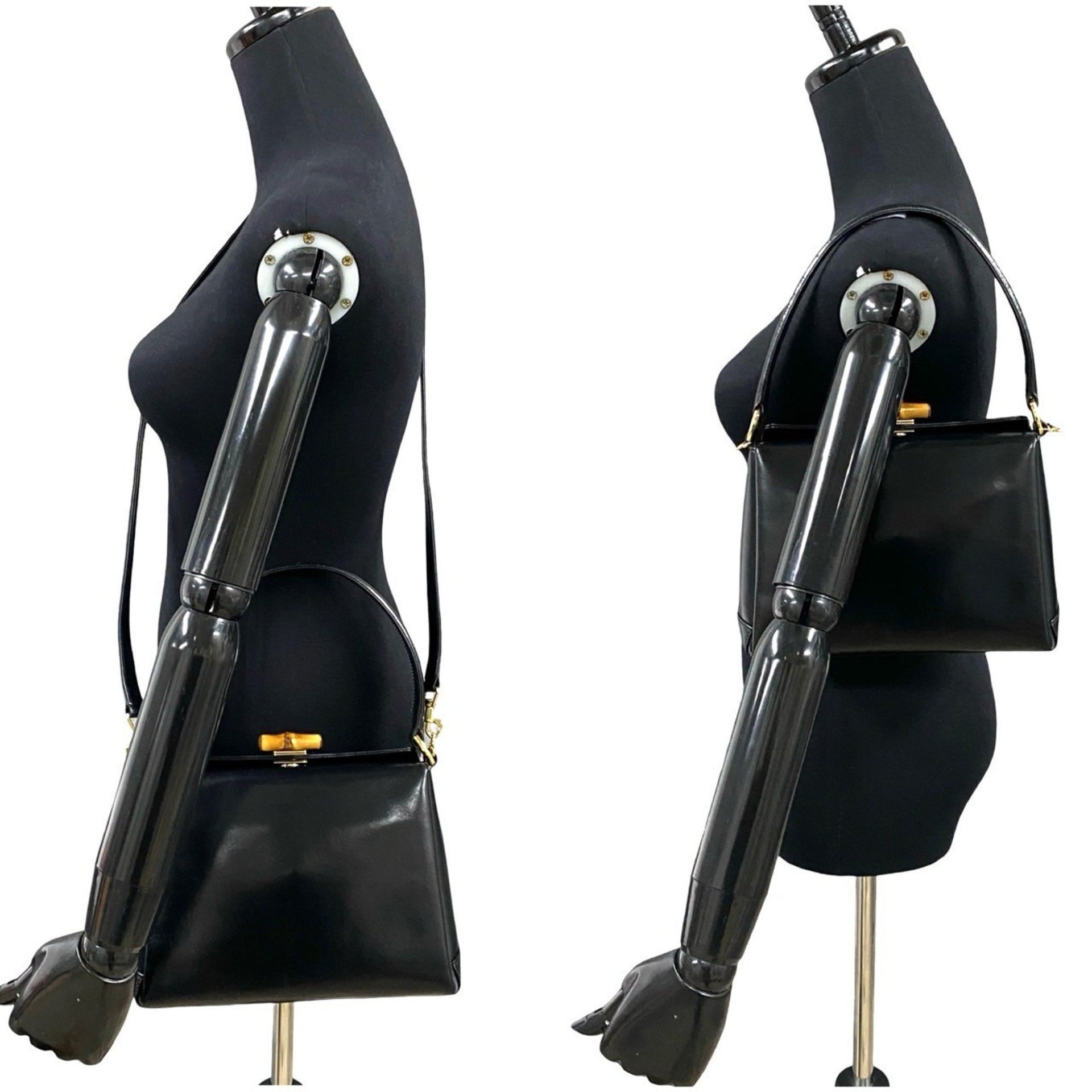 GUCCI Old Gucci Vintage Bamboo Calf Leather 2-Way Handbag/Shoulder Bag Black 845-1
