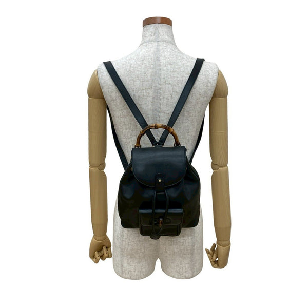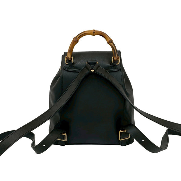 GUCCI Old Gucci Vintage Bamboo Leather Backpack/Daypack in Black 59459