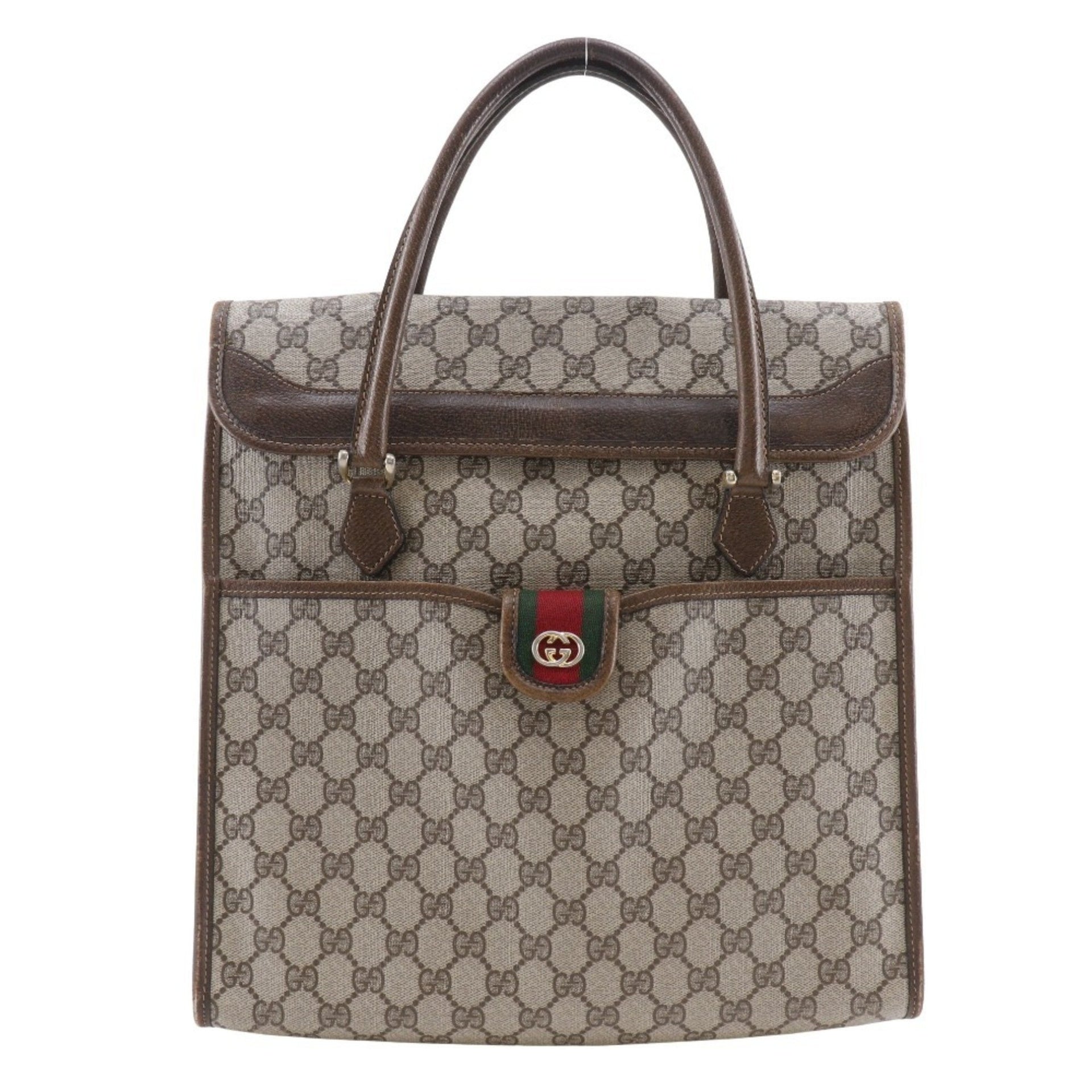 Gucci Old Handbag Sherry Line Interlocking GG 02.4139.58 PVC Brown Snap Button Unisex