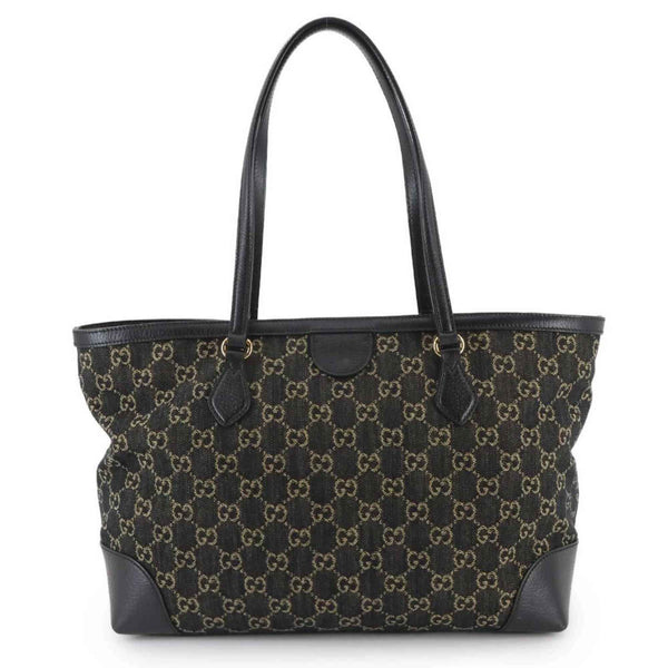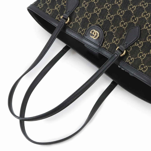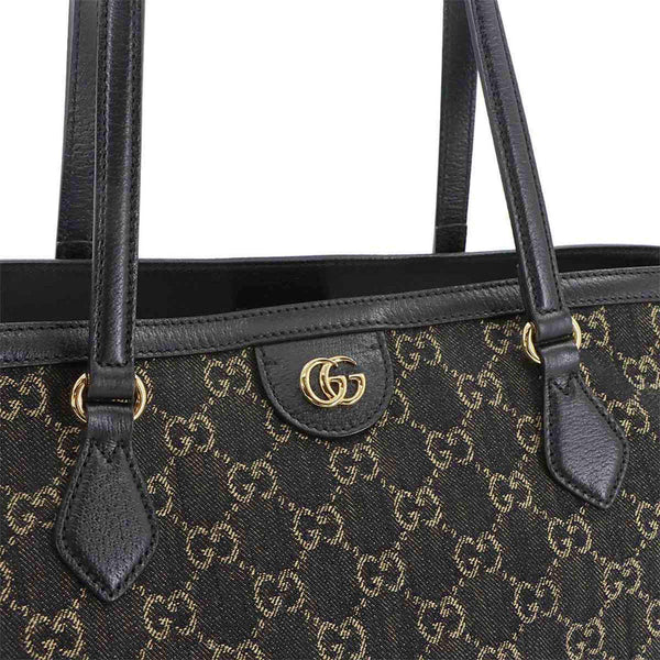 Gucci Ophidia Medium Tote Bag in GG Jacquard Denim and Leather, Black, 631685