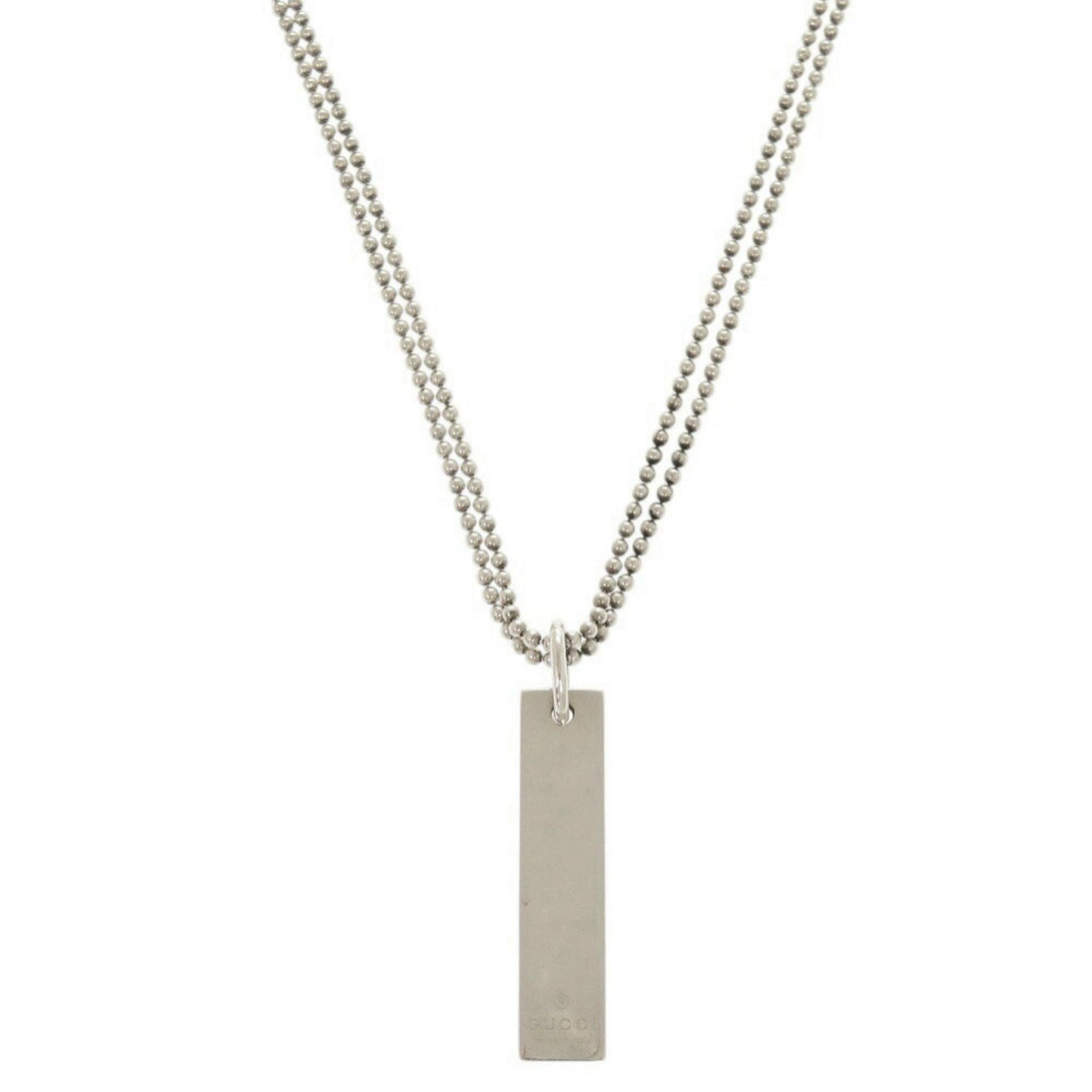 Gucci Plate Double Ball Chain Silver 925 Necklace Pendant 1303GUCCI