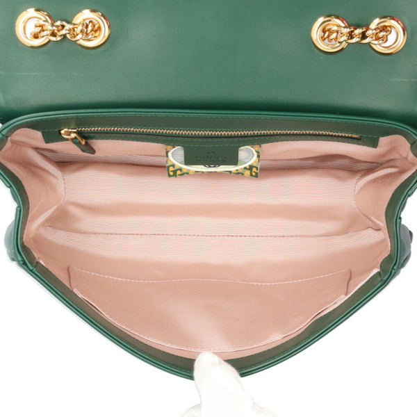 Gucci Raja Shoulder Bag, Leather, 537241, Green, Women\'s, GUCCI Double Chain