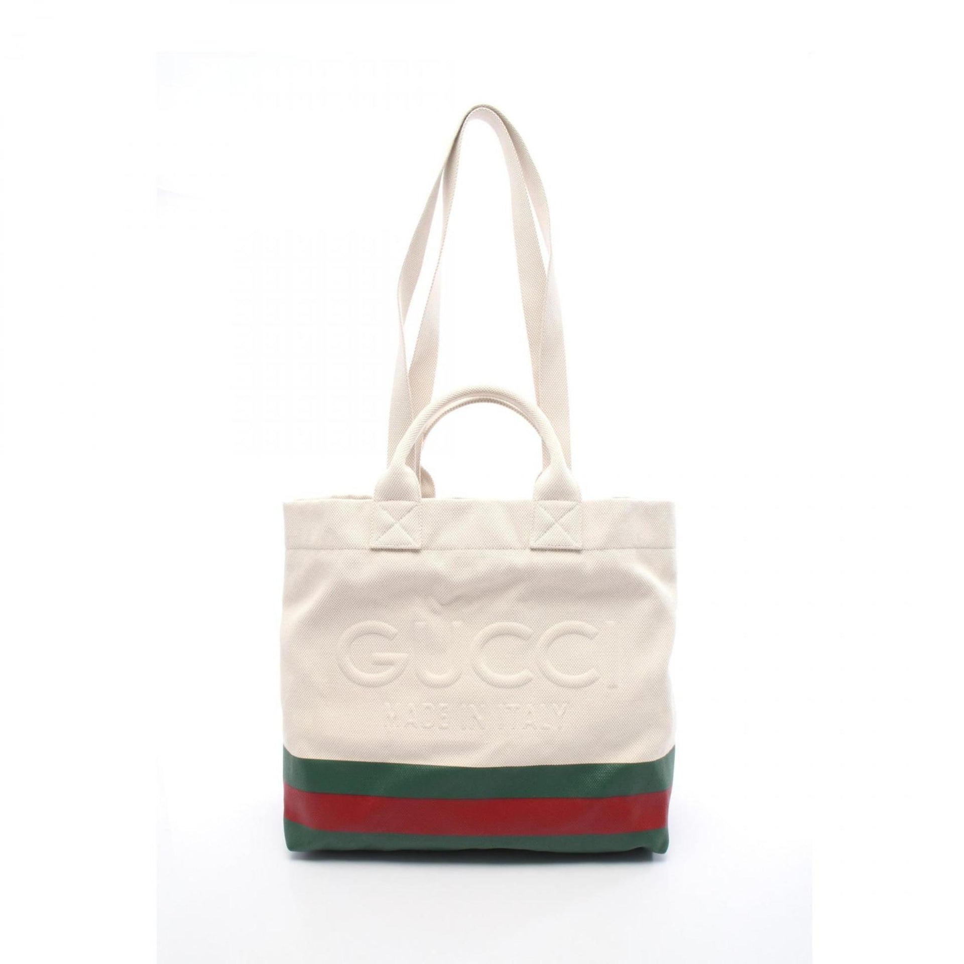 Gucci Sherry Line Tote Bag, Canvas, Men\'s and Women\'s, Ivory, Green, Red, 782741