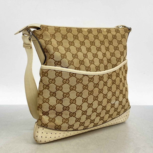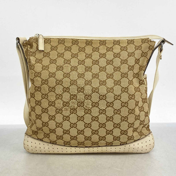 Gucci Shoulder Bag GG Canvas 145857 Beige Brown White Women\'s
