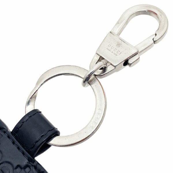 Gucci Signature Leather Key Ring in Black Calfskin (478136) with GG Shima Line Tag, Hook Charm, Bag Charm (TT-15765)