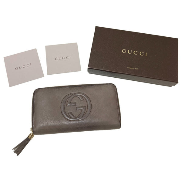 GUCCI Soho Interlocking G Leather Long Wallet 308004 Greige Women\'s