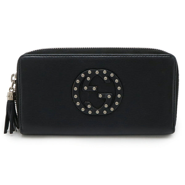 GUCCI Soho Interlocking G Stud Round Long Wallet in Black Leather (308004)