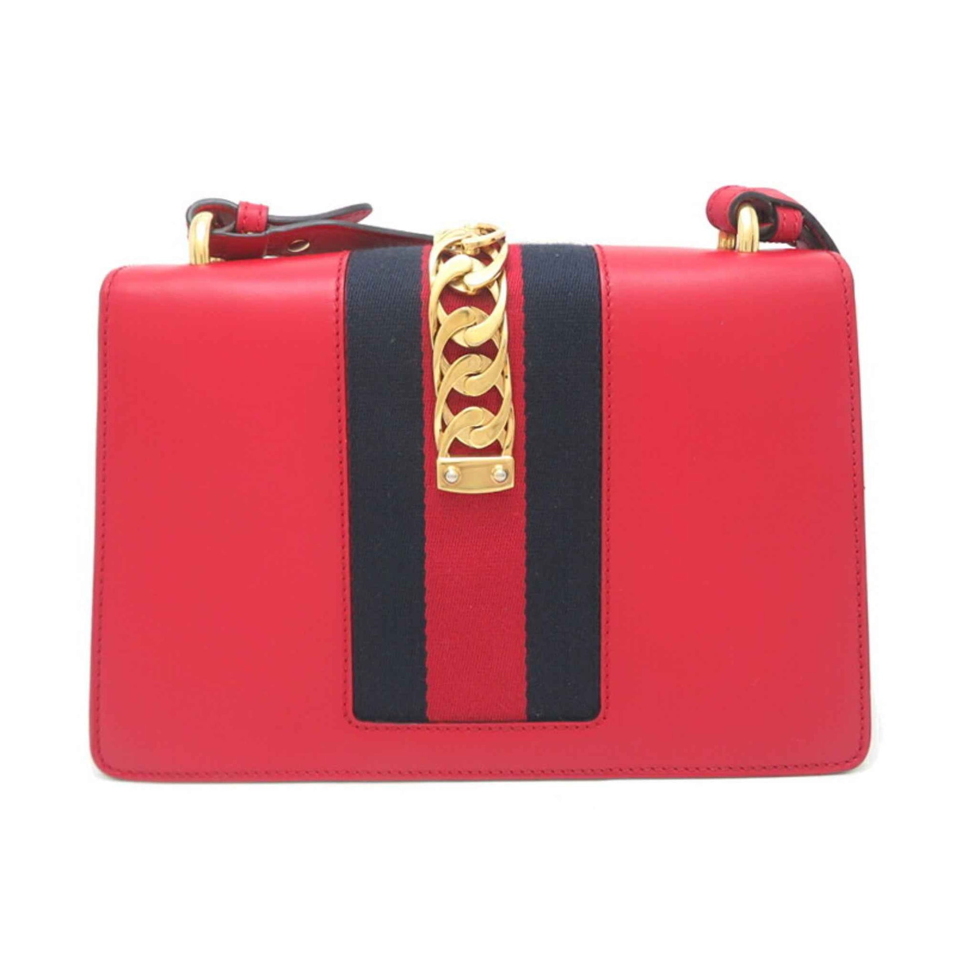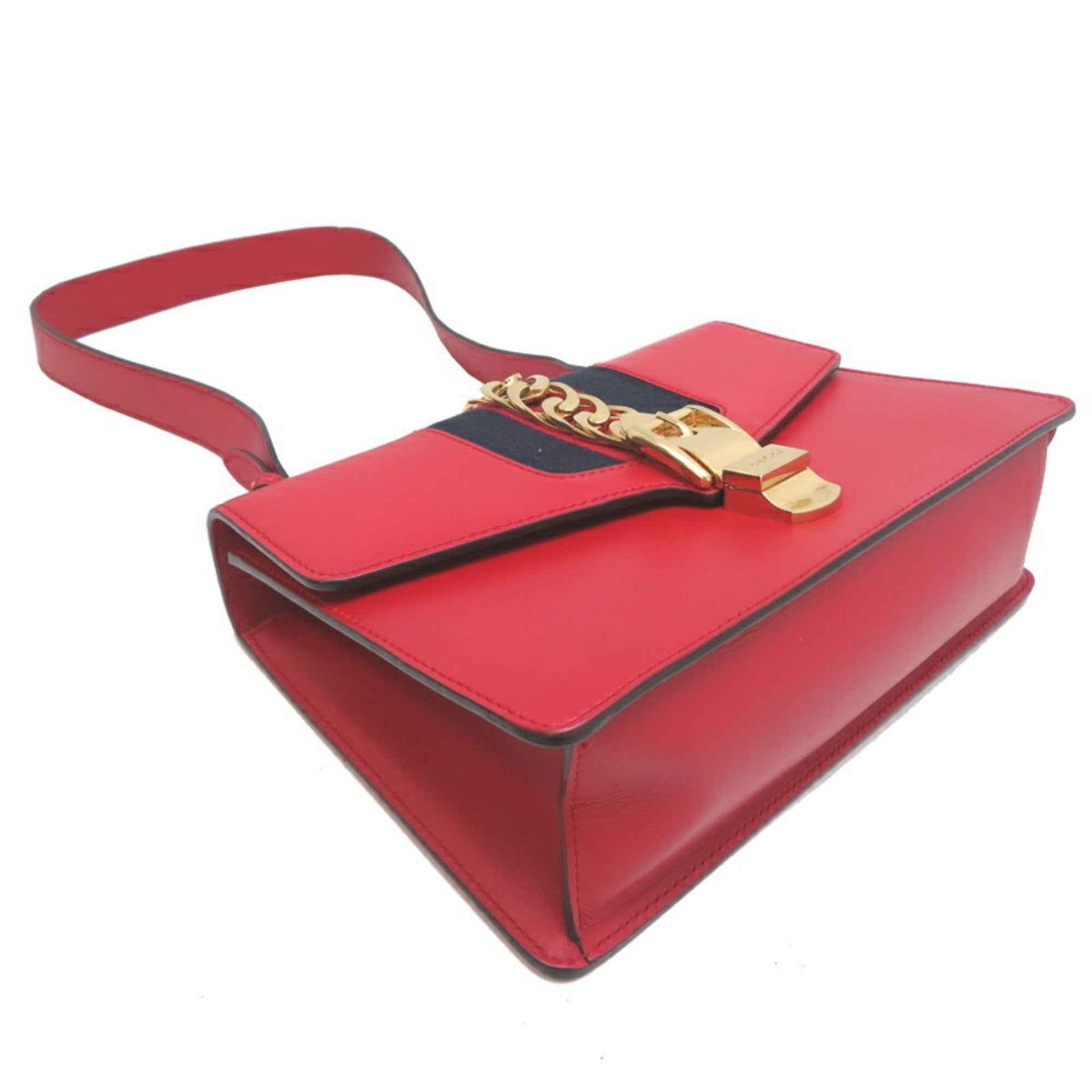 Gucci Sylvie Women\'s Shoulder Bag 421882 Leather Red