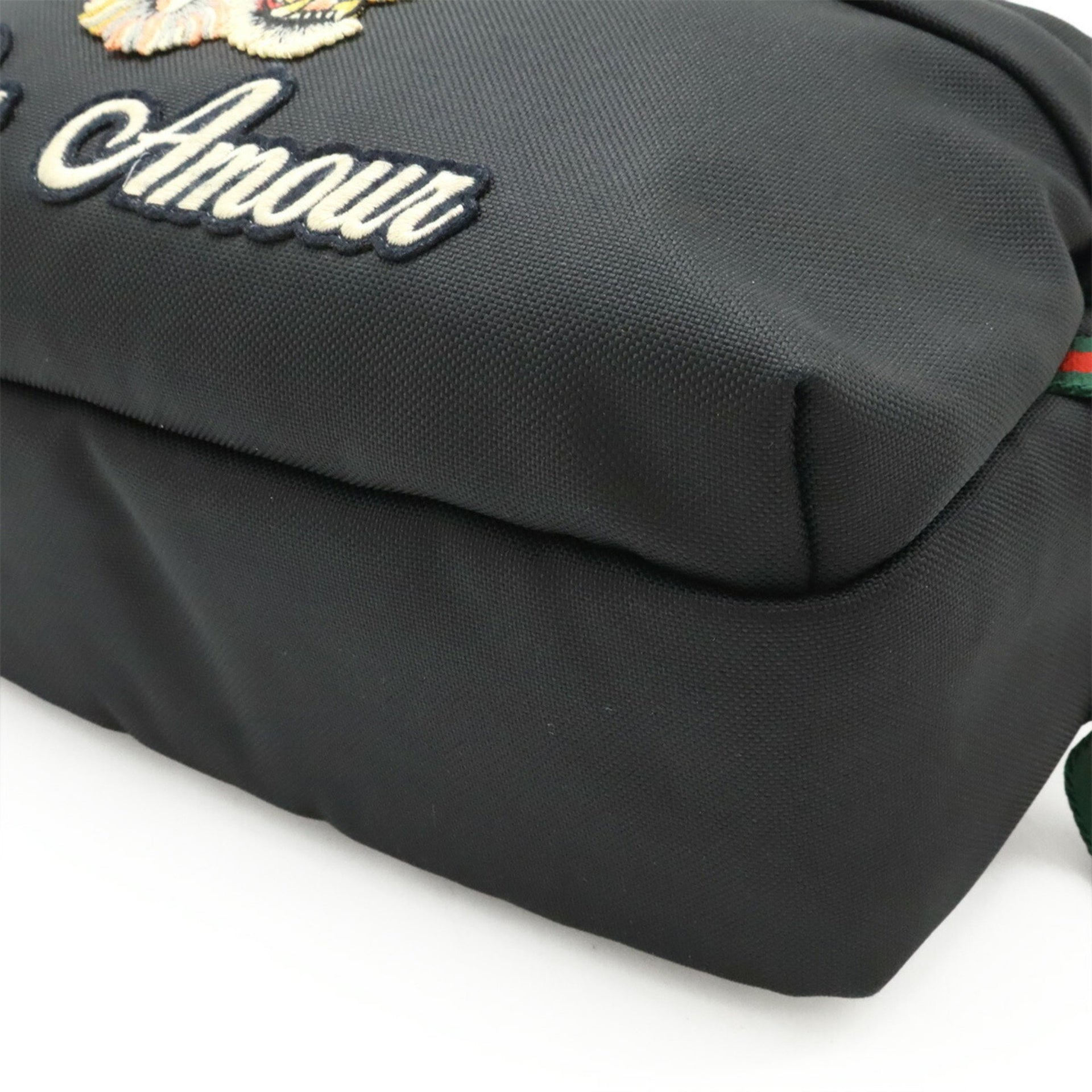 GUCCI Techno Canvas Tech Pack Belt Bag with Tiger Embroidery, Black, 477085