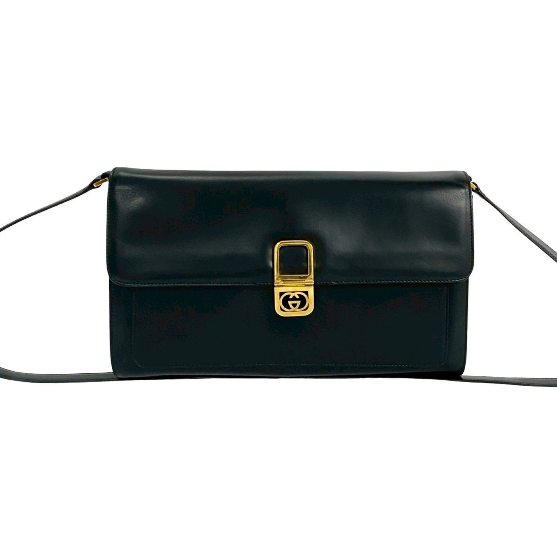 GUCCI Vintage GG Logo Hardware Leather Shoulder Bag/Clutch Bag Black 80100