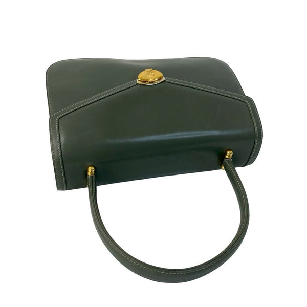 GUCCI Vintage GG Logo Metal Leather Handbag/Mini Tote Bag, Gray, 70625
