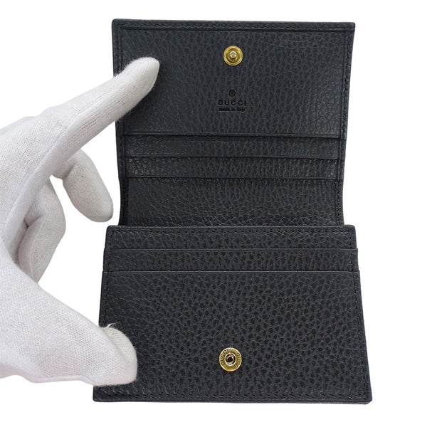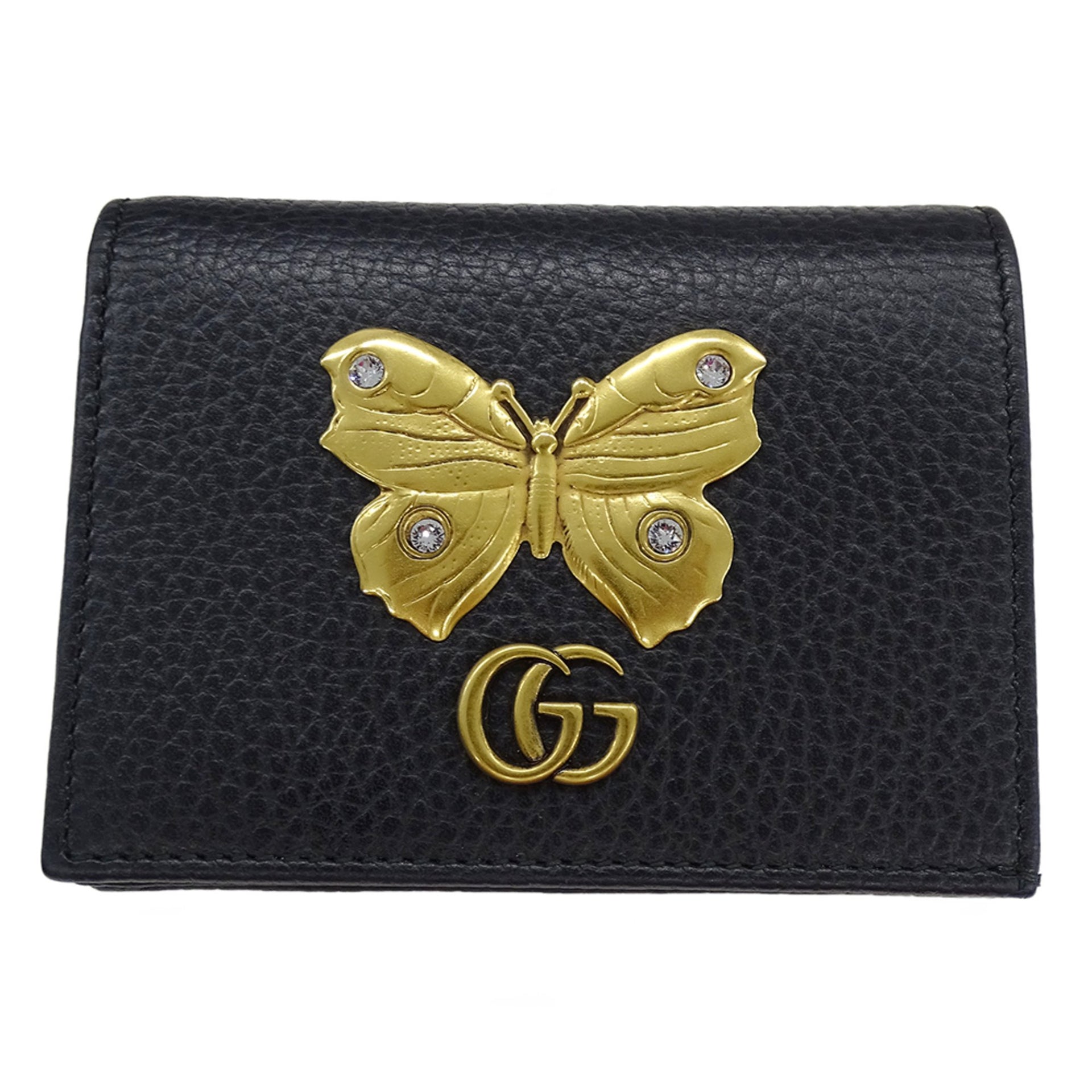 Gucci Women\'s Bifold Leather Wallet with Stone and Marmont Butterfly Design in Black Gold Hardware, Compact (499361)