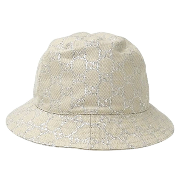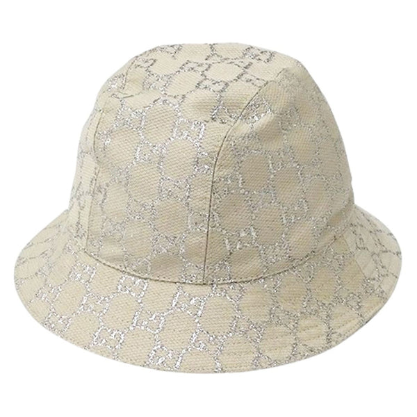 Gucci Women\'s Bucket Hat with GG Lamé Wool and White Silver Accents, Size M (631951), 57cm