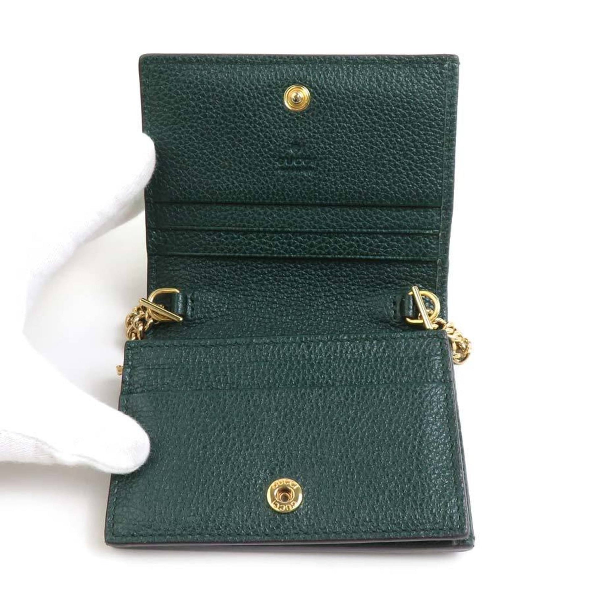 Gucci Women\'s Zumi Leather Bifold Chain Wallet in Dark Green, Gold, and Silver (Product Code: 570660 e60739a)
