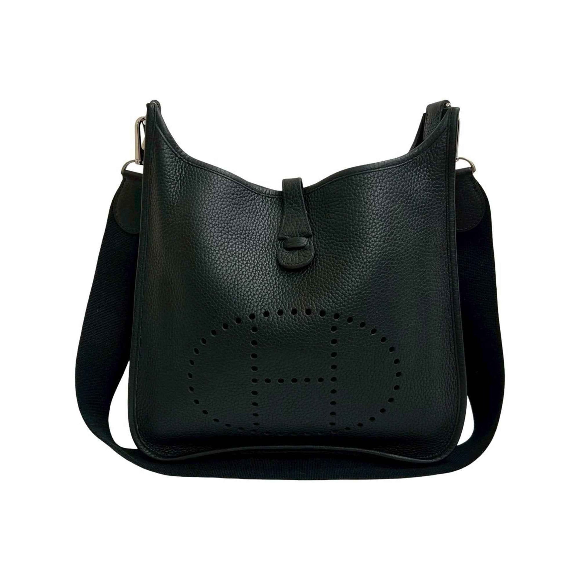 □H Stamp HERMES Evelyn II PM Logo Taurillon Clemence Leather Shoulder Bag Pochette Black 26773