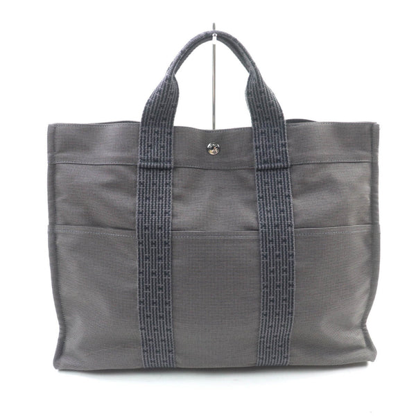 HERMES Air Line MM Silver Hardware Serie Button Canvas Tote Bag Gray Made in France Women\'s
